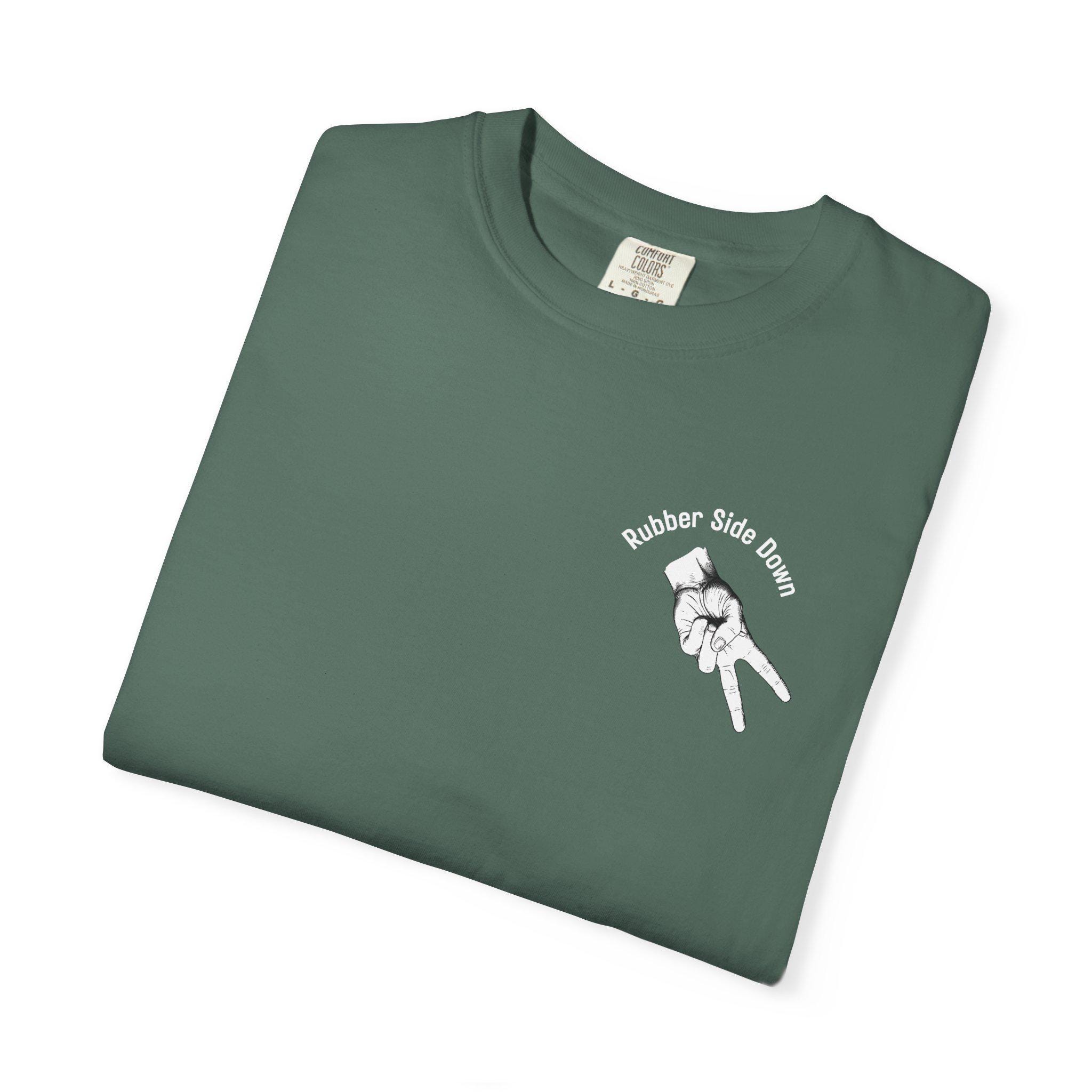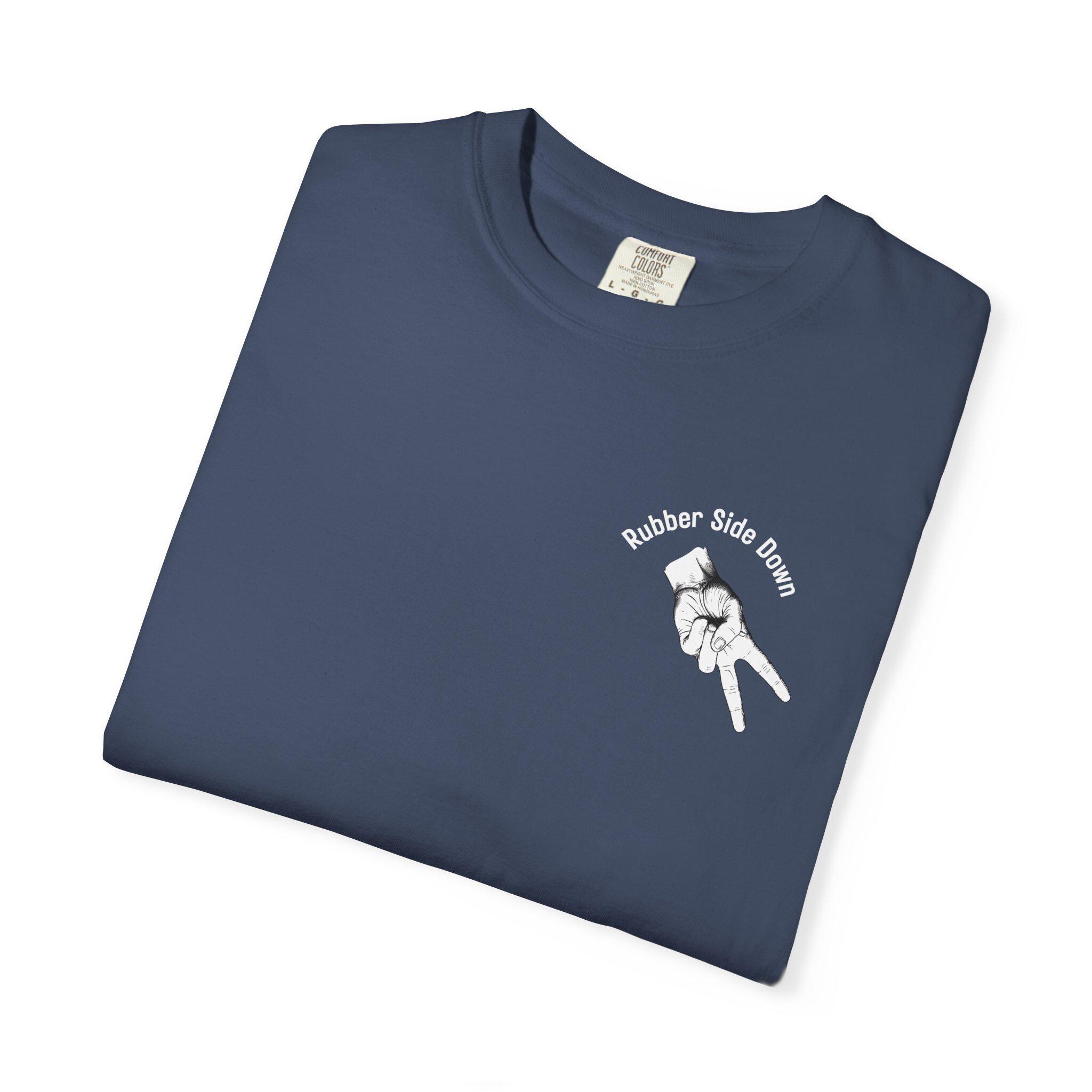 This motorcycle themed T-shirt exudes a cool, rebellious vibe perfect for motorcycle enthusiasts. It makes a great gift. Ideal for casual wear or as a statement piece for special events or bike rallies.