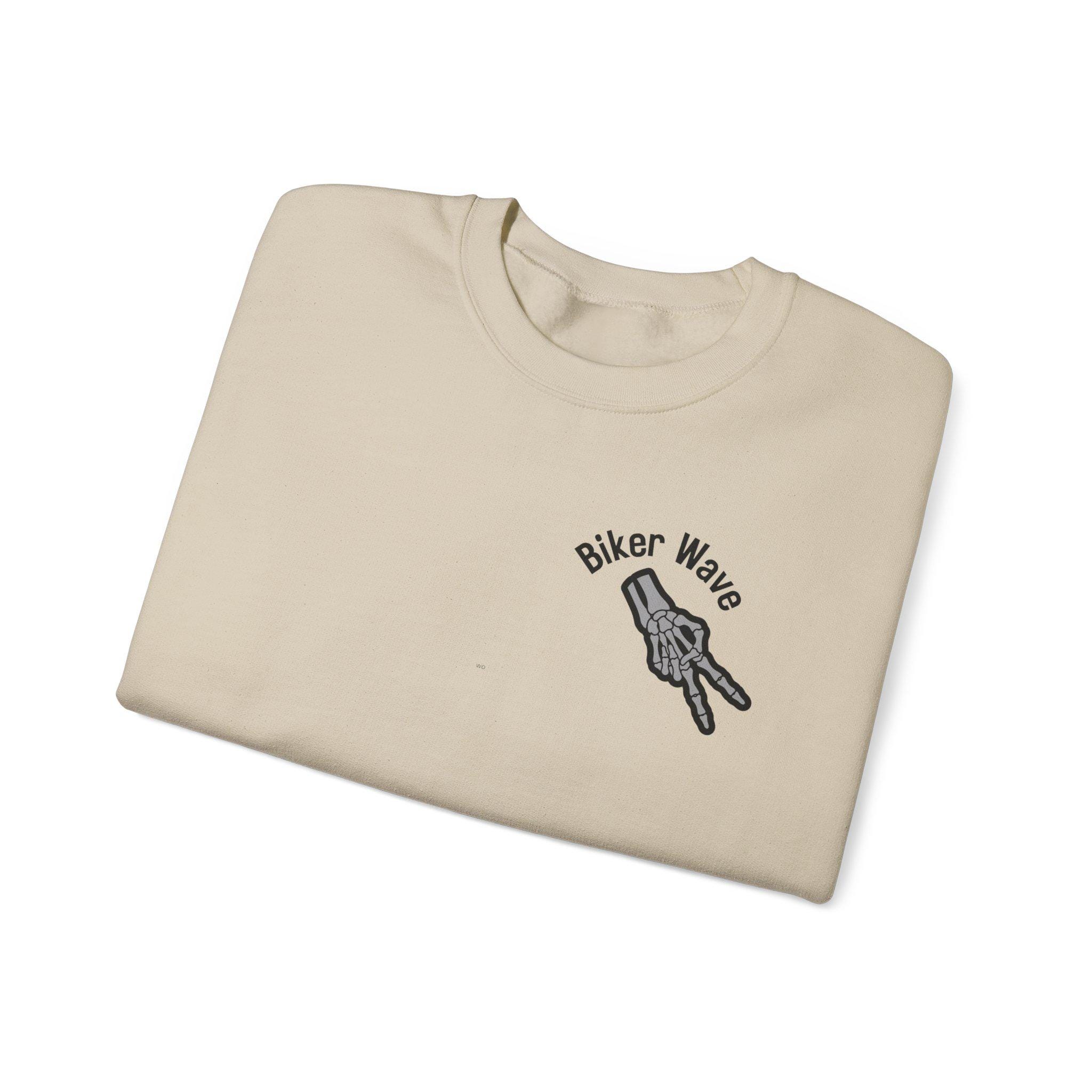 This motorcycle themed sweatshirt exudes a cool, rebellious vibe perfect for motorcycle enthusiasts. It makes a great gift. Ideal for casual wear or as a statement piece for special events or bike rallies.