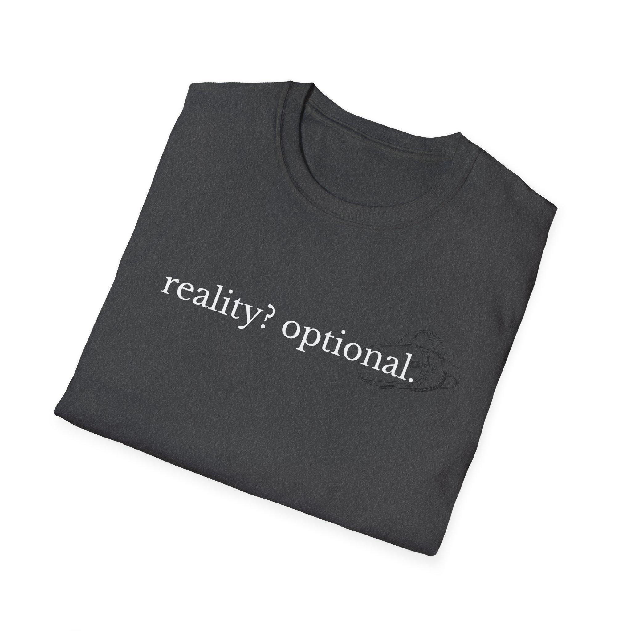 Reality? Optional Humorous Gaming tee featuring an VR headset. Lightweight and smooth against the skin, it sits easily under a jacket or worn solo during long gaming sessions, coffee runs, or casual meetups. The understated crew neck and classic fit keep the silhouette neutral so the message takes center stage: a small, confident reminder that sometimes you lean into the algorithm and trust the process. It’s the kind of shirt you reach for when you want to feel quietly clever and connected to a community that gets the joke — fellow coders, digital designers, and anyone who treats iteration like a lifestyle. Wear it to hackathons, coworking nights, or when you need a gentle, ironic boost on days that don’t go exactly as planned.