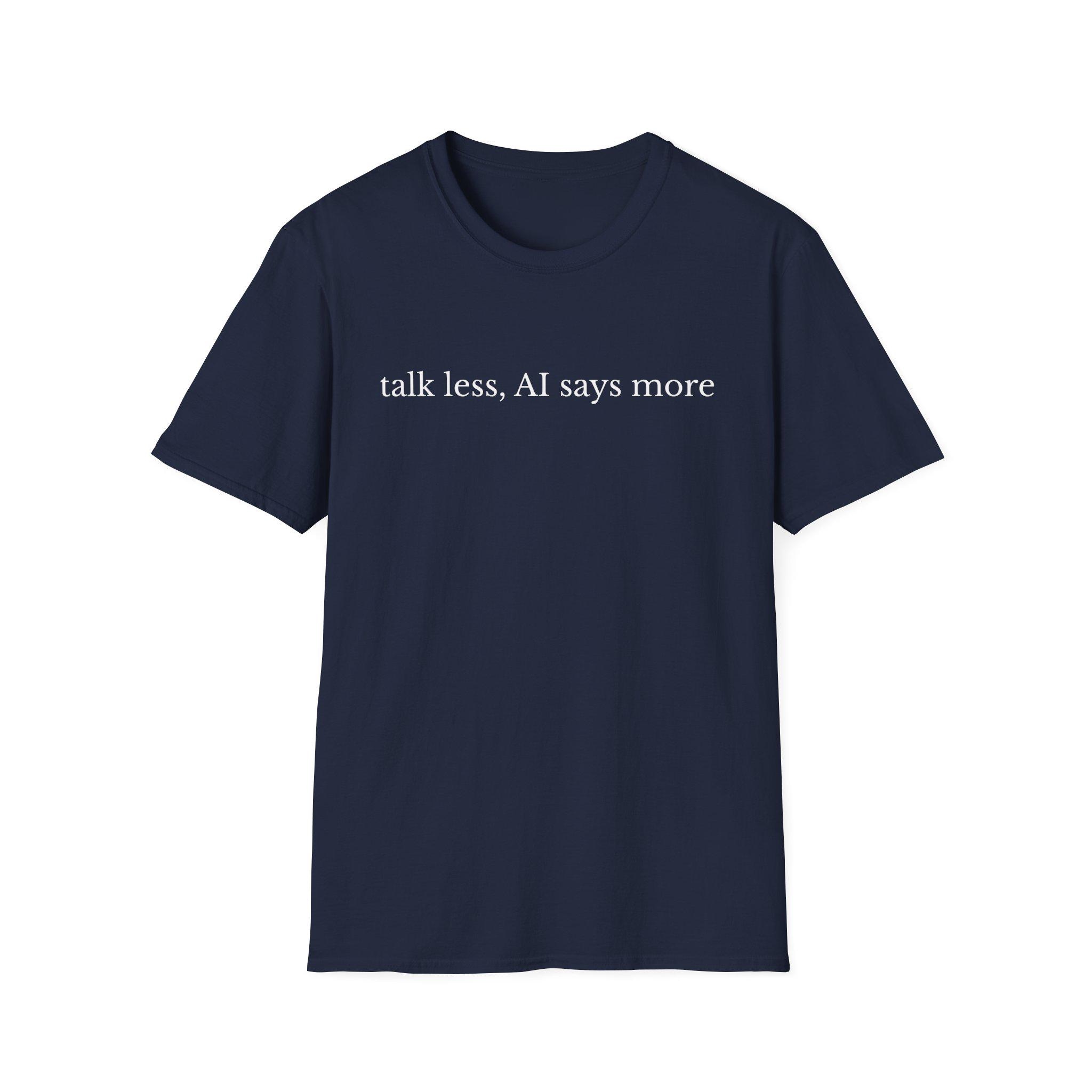 Talk Less, AI Says More! The design nods to minds that tinker with code and wonder about machines that learn—witty and quietly confident. Lightweight cotton sits close to the skin, so the slogan reads clear and neat without shouting. Throw it on during long coding sprints, coffee-fueled meetups, or casual gallery nights and it will read like a backstage pass: you’re someone who thinks about the future and still loves a good, human-sized question. The subtle natural flecks in the fabric give it a lived-in, analog warmth that contrasts nicely with the tech-forward message. It ages well, keeps its shape, and stays comfortable whether you’re debugging at 2 AM or explaining an idea to a friend over lunch.