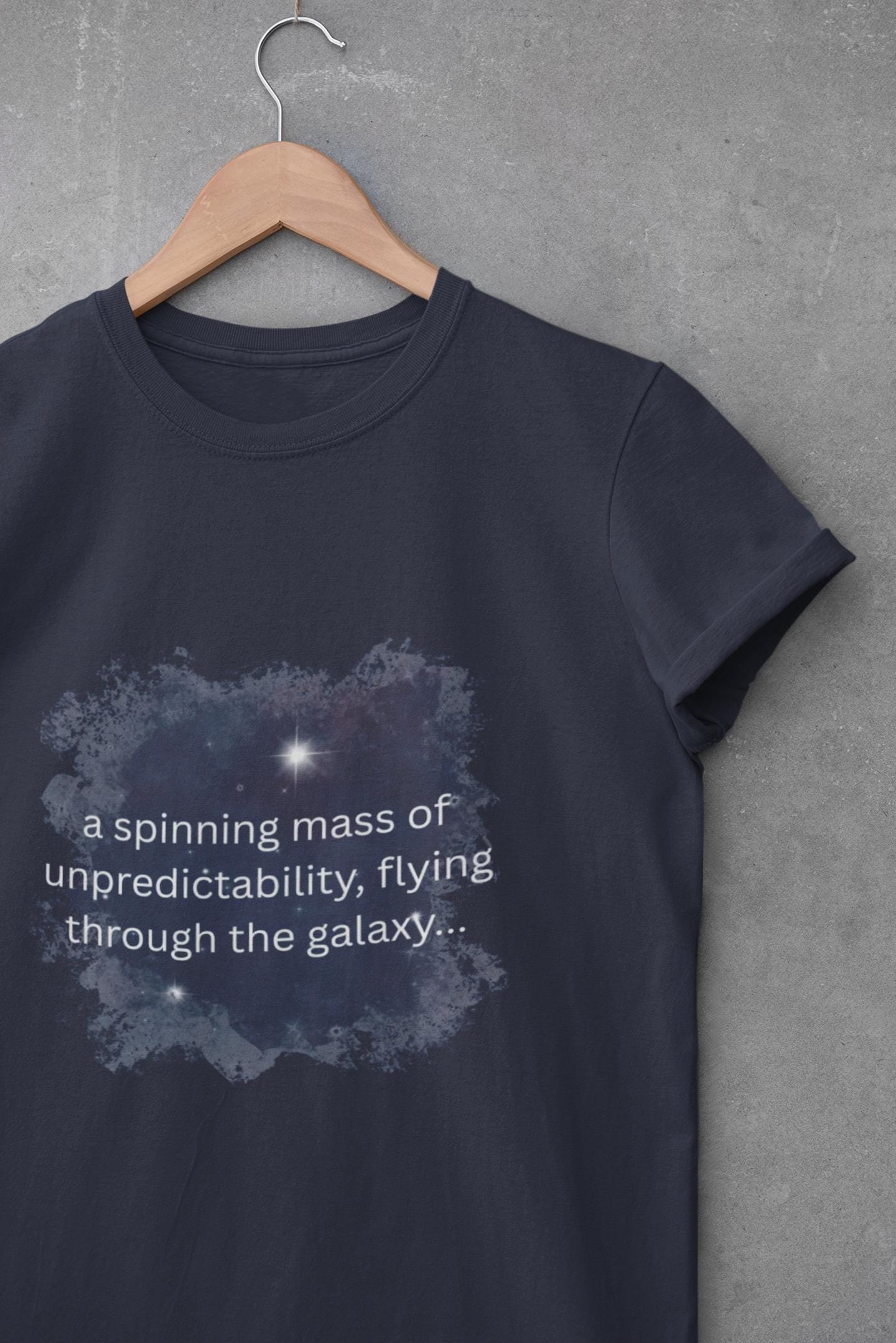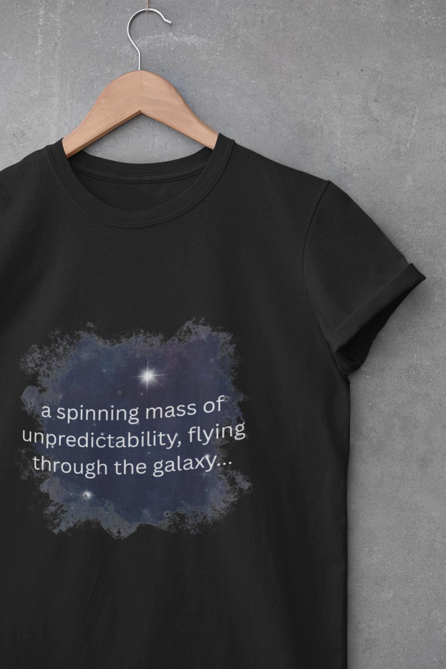 This lightweight crewneck tee carries a quiet, stargazed mood — a soft wash of ink and distant stars printed at chest height, like a private window into the night. The smooth ring-spun cotton feels gentle against skin and drapes cleanly, so the artwork sits and breathes without distraction. Wear it on late-night drives, over coffee at an indie bookstore, or layered under a jacket for soundcheck and small shows. It’s made to fade into your everyday rotation: simple, subtle, and quietly intentional.
