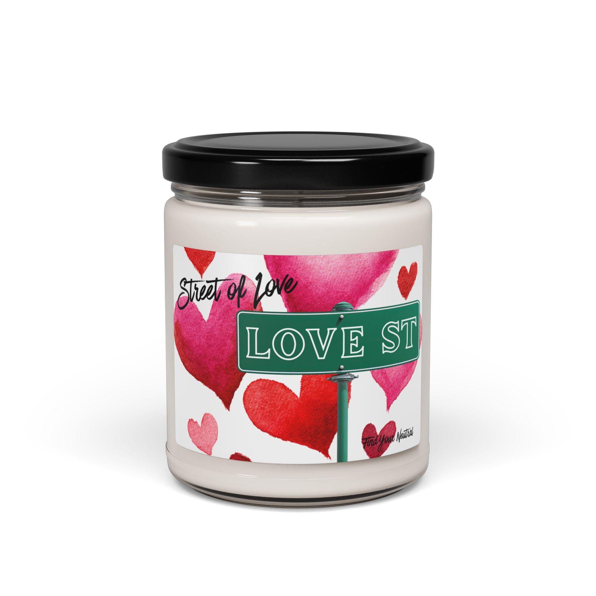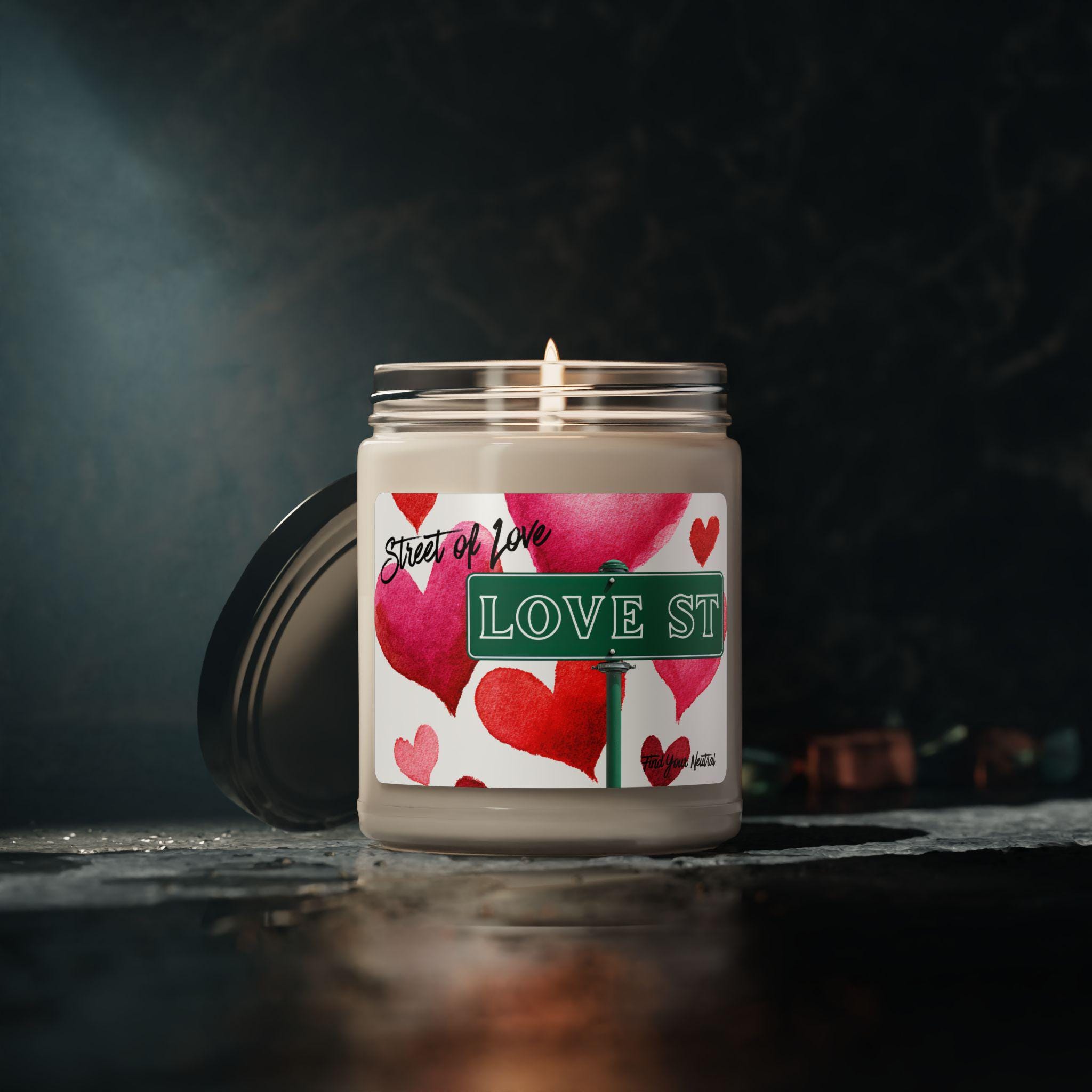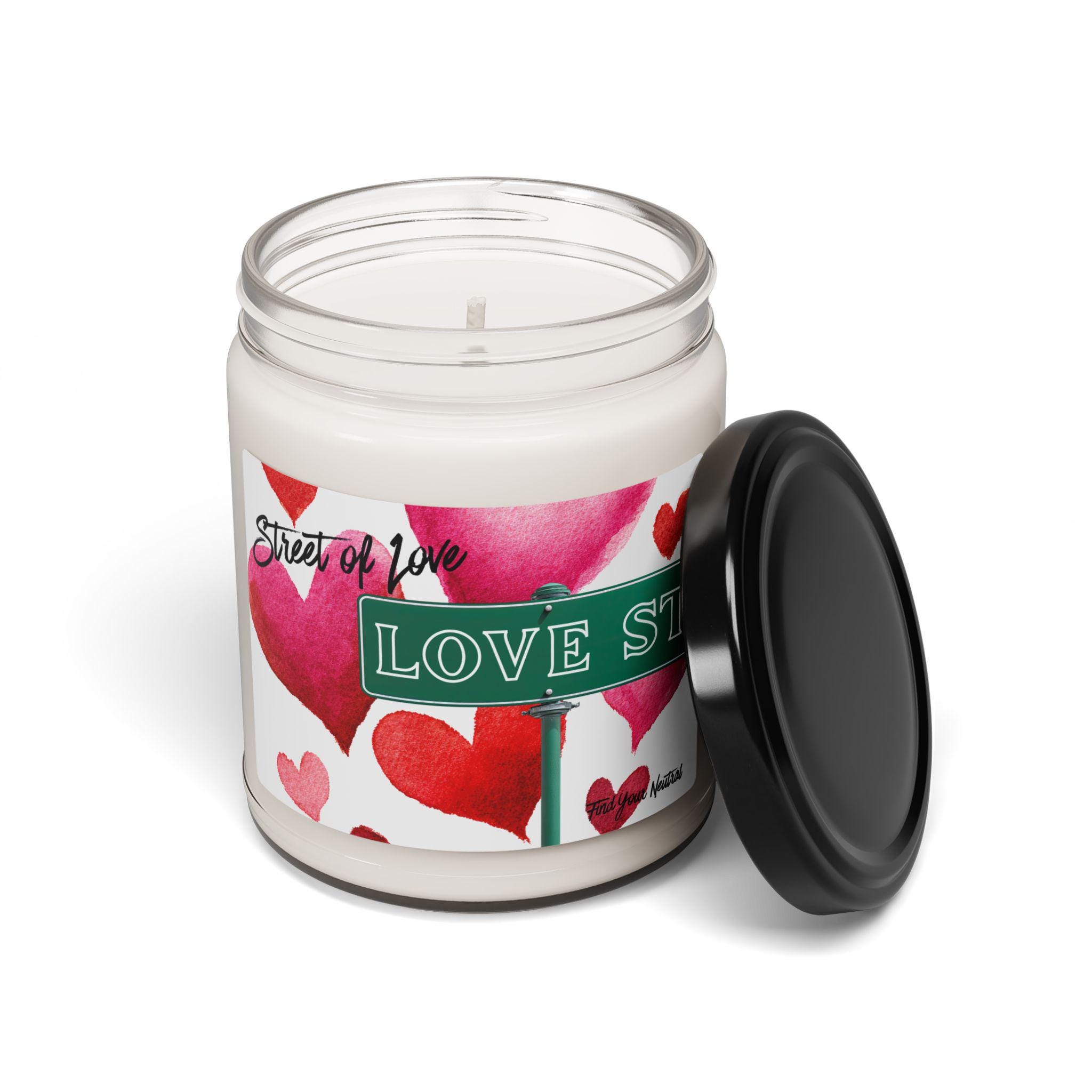 Scented 100% Soy Candle | Street of Love | Scented Soy Candle 9oz, Street Sign - Heart Design - Valentines