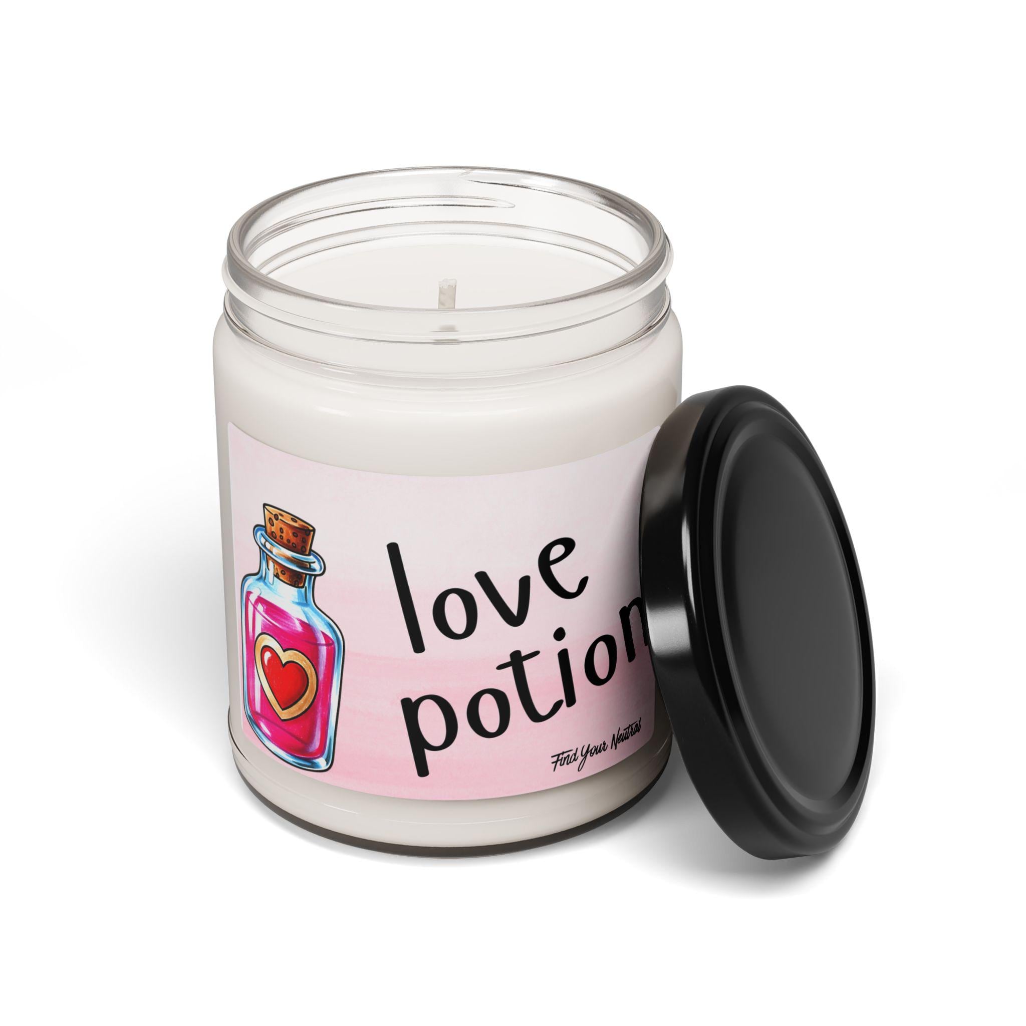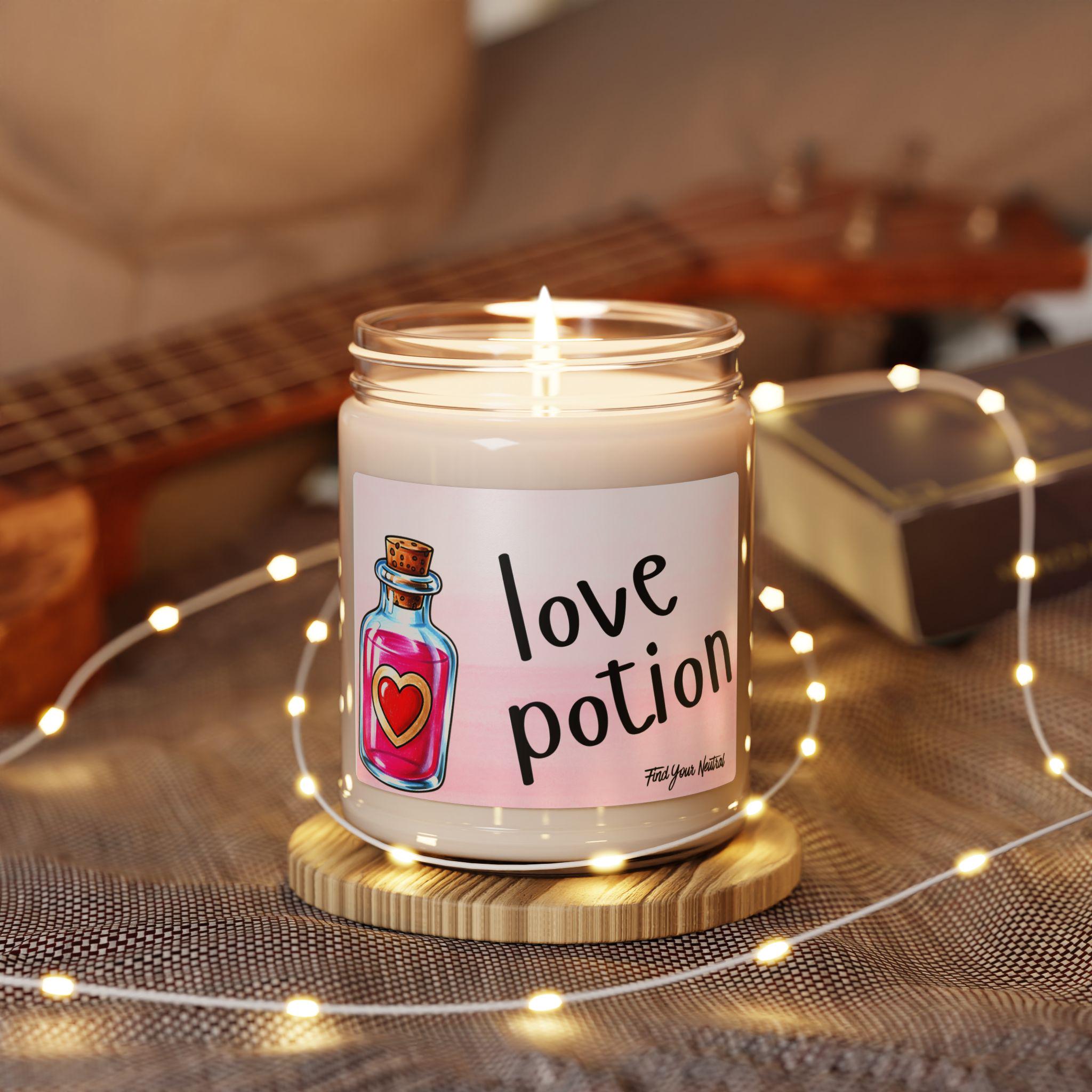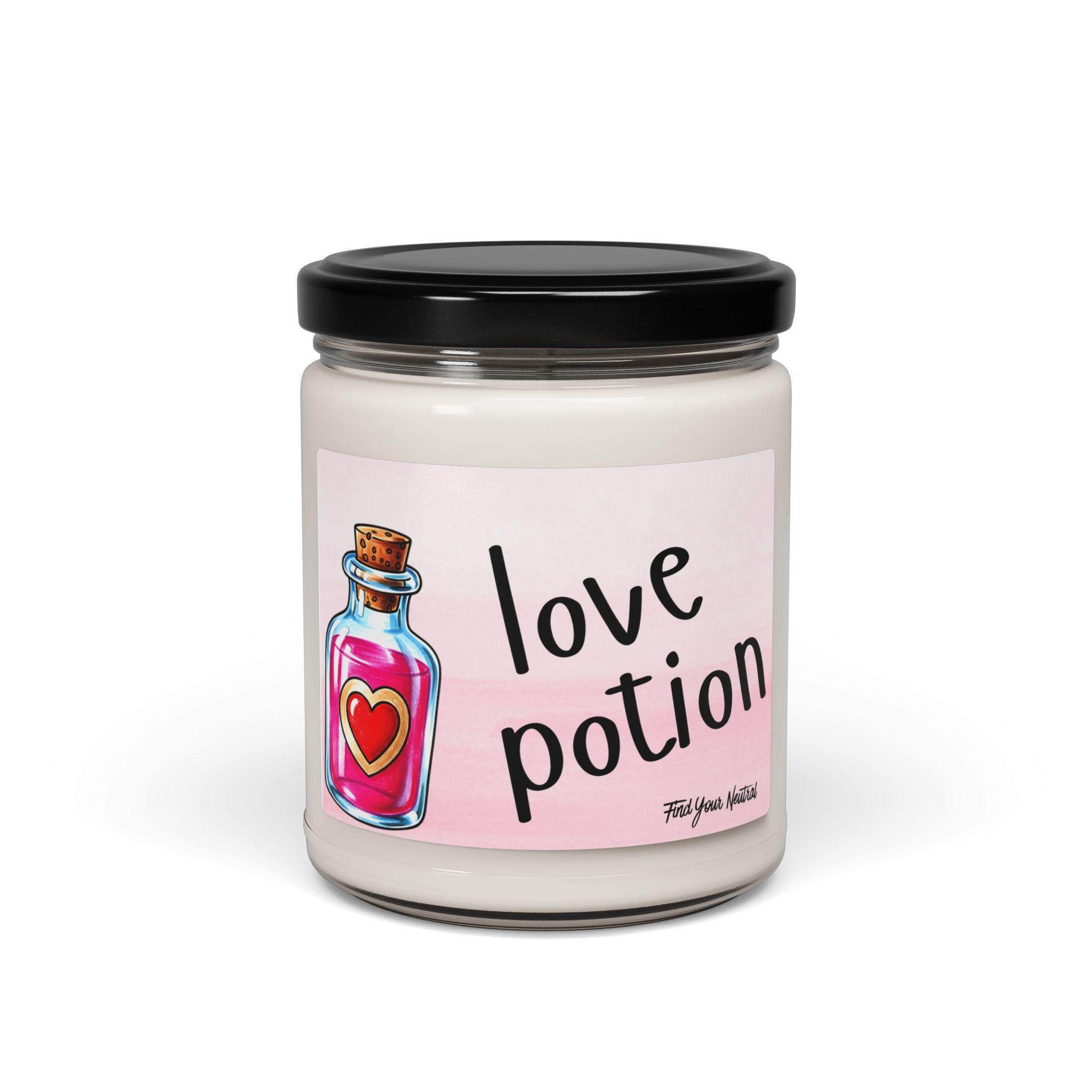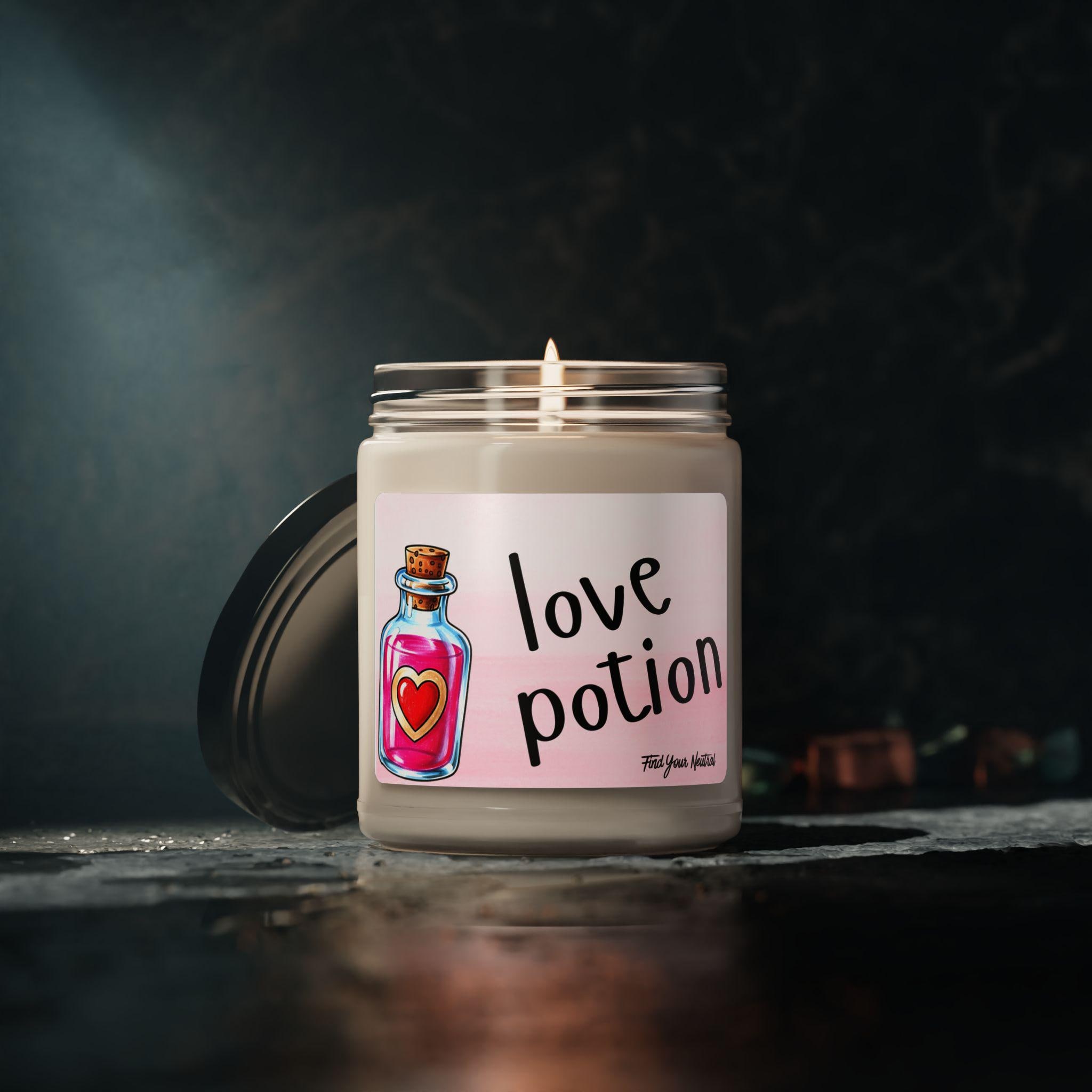 Scented 100% Soy Candles | Love Potion | Scented Soy Candle 9oz, - Couple - Potion Bottle - Heart Design - Valentines