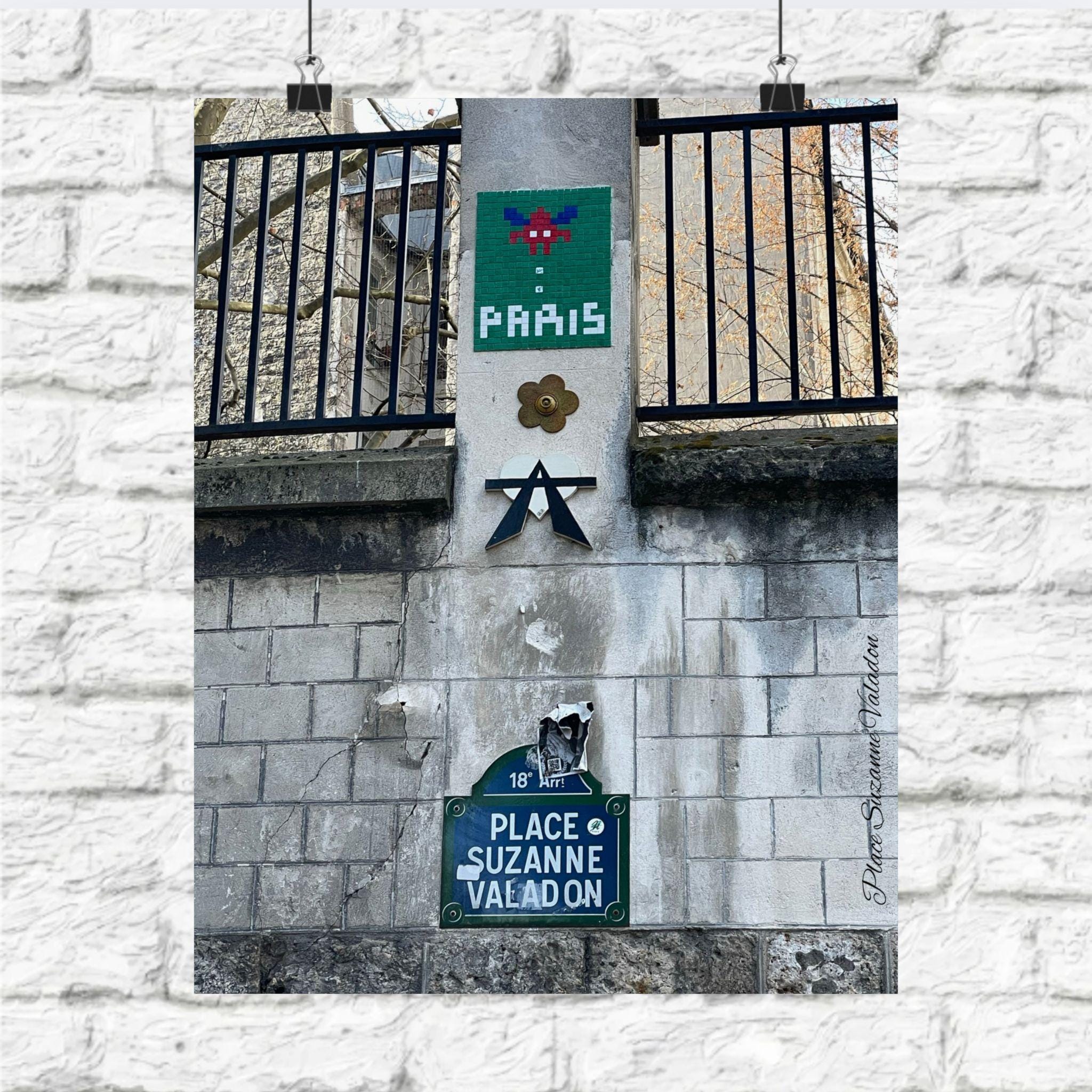 An original photograph taken at Place Suzanne-Valadon in Paris, France - Monmarte. A rich, atmospheric satin poster that transports you straight to a quiet corner of Montmartre. The original photograph captures a weathered street sign and layered graffiti on Place Suzanne-Valadon, its warm tones and urban textures rendered with intense, pigment-rich color on low-glare, museum-grade paper. Hung casually with tape, tacks, or framed, the print brings a lived-in Parisian moment to your wall — a small window to cobbled streets, late-afternoon light, and the kind of city details that reward slow looking. It sits naturally in compact city apartments, creative studios, or curated gallery walls, and adds depth to housewarmings, artist gatherings, or evenings spent planning the next trip. Because the paper is archival and printed with modern techniques, the image keeps its clarity and color over time, making it a piece you’ll return to again and again.