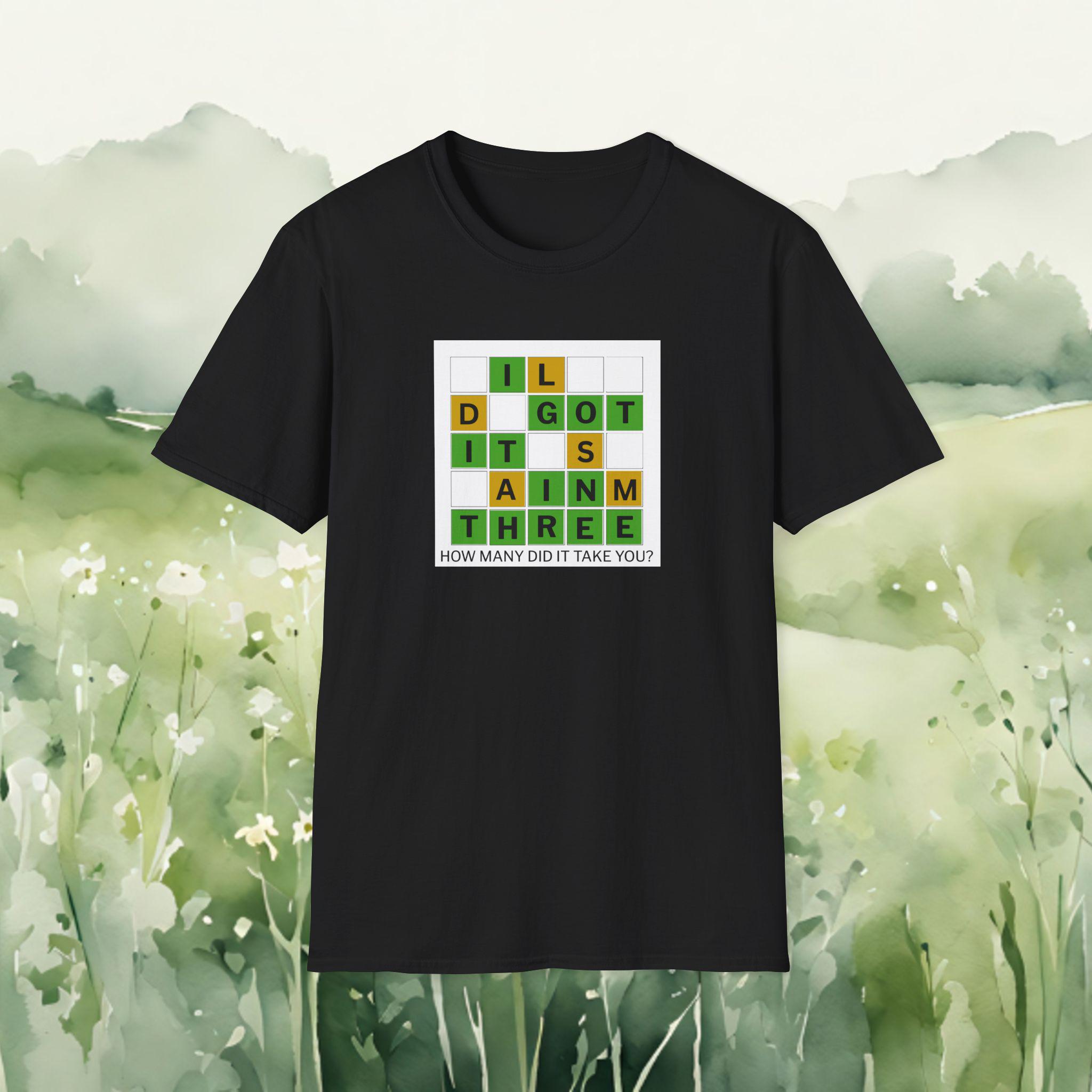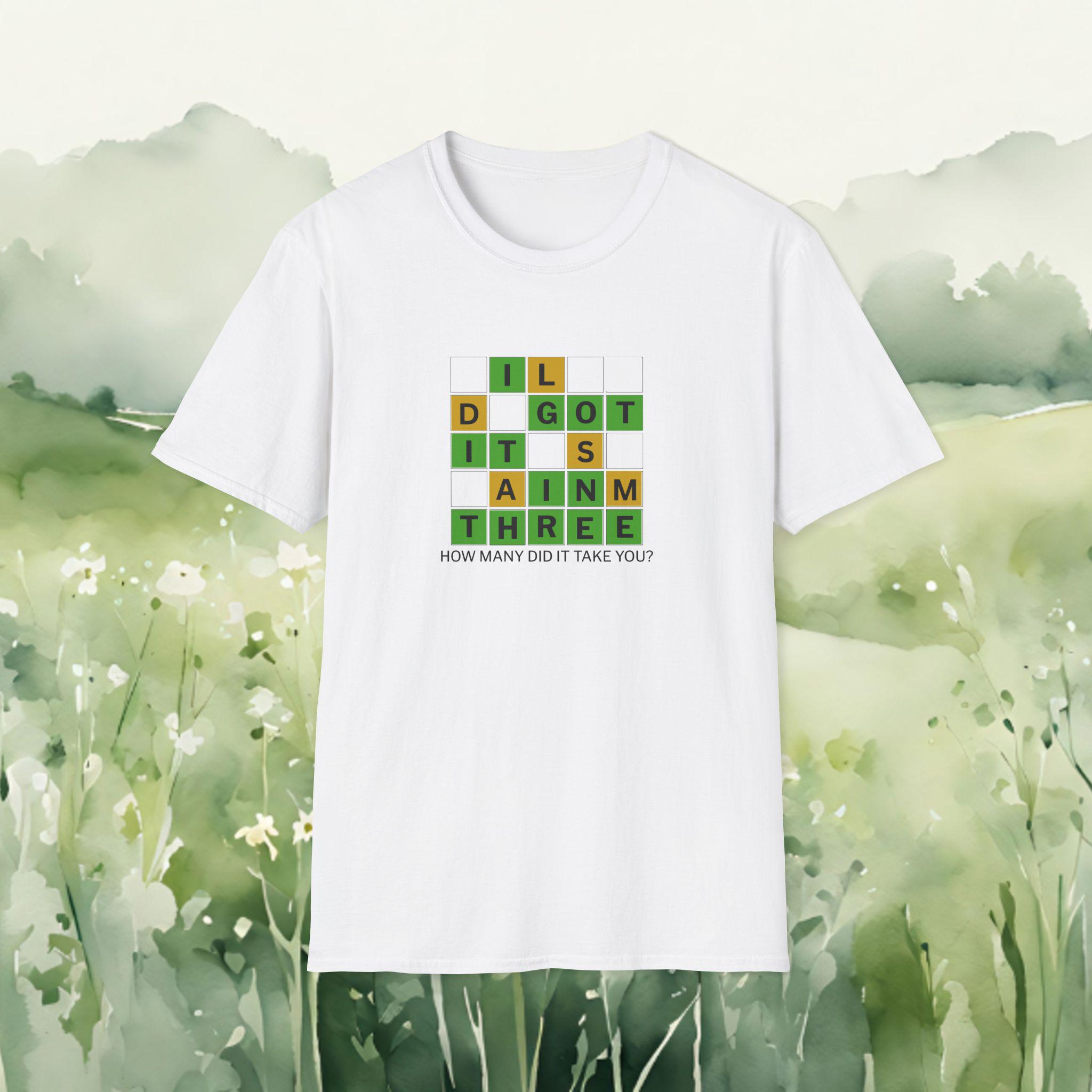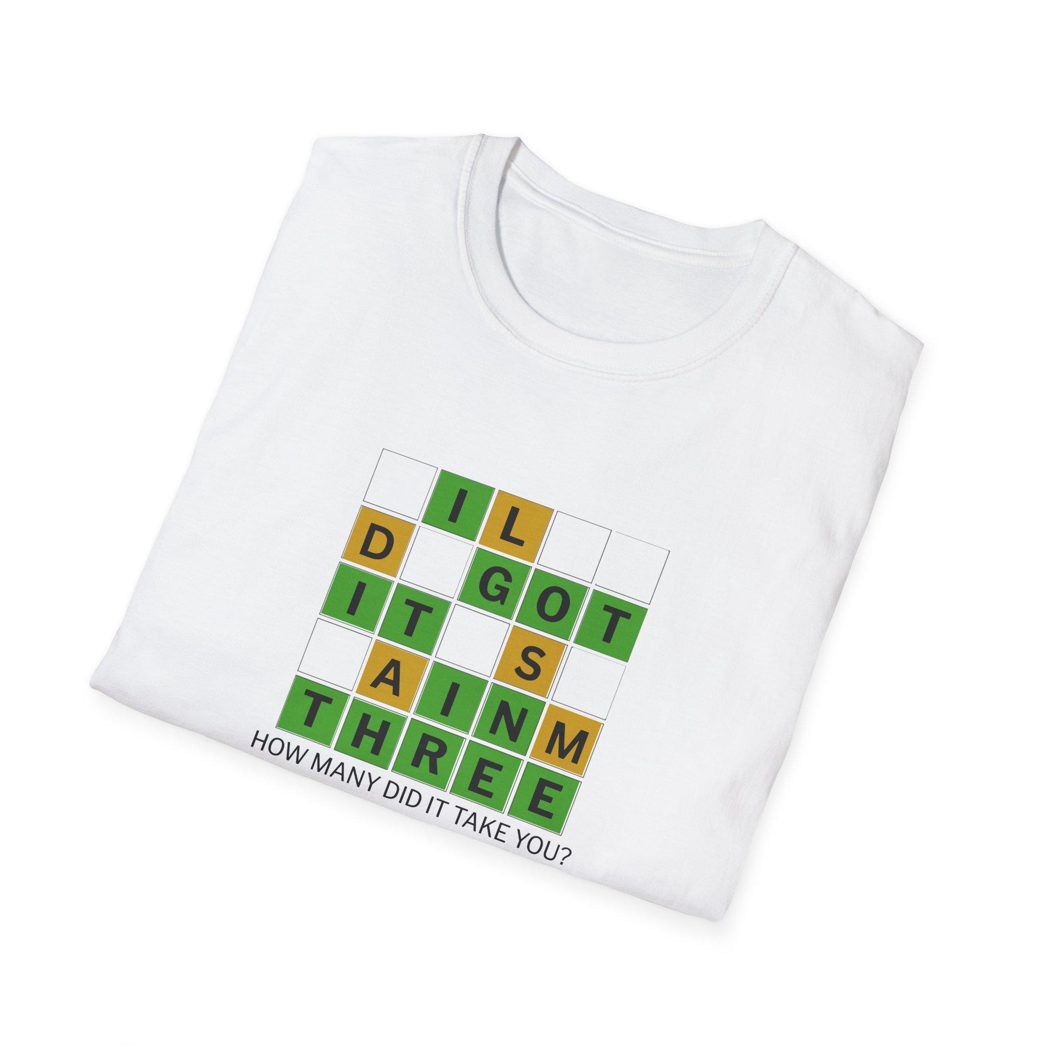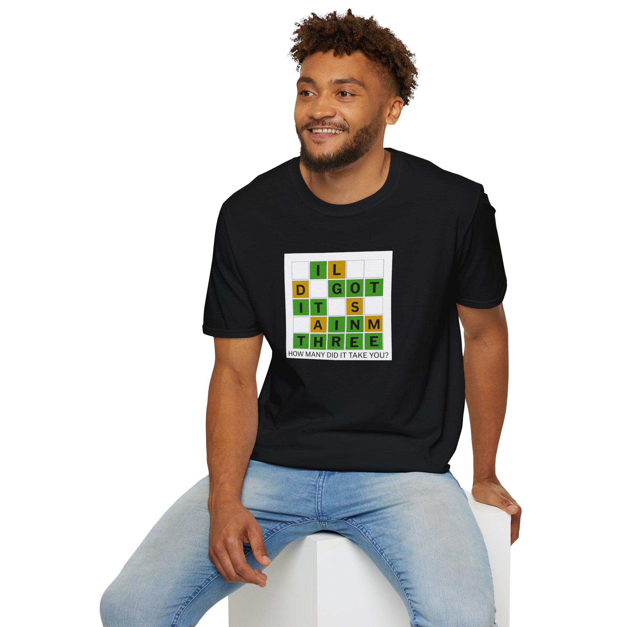 This soft, lightweight tee brings a cheeky, brain-teaser vibe to everyday wear. The front features a colorful word-grid design with the phrase “I GOT IT IN THREE” and the small caption: “HOW MANY DID IT TAKE YOU?” It reads like a playful puzzle—great for people who love word games, trivia nights, and casual conversations. The shirt’s smooth ring-spun cotton feels breathable and gentle against skin, while the classic crew neck and clean fit make it easy to layer under a jacket or wear on its own. Wear it to game nights, puzzle meetups, weekend coffee runs, or whenever you want to spark a smile and a quick challenge among friends.