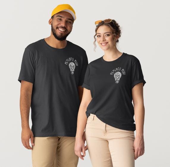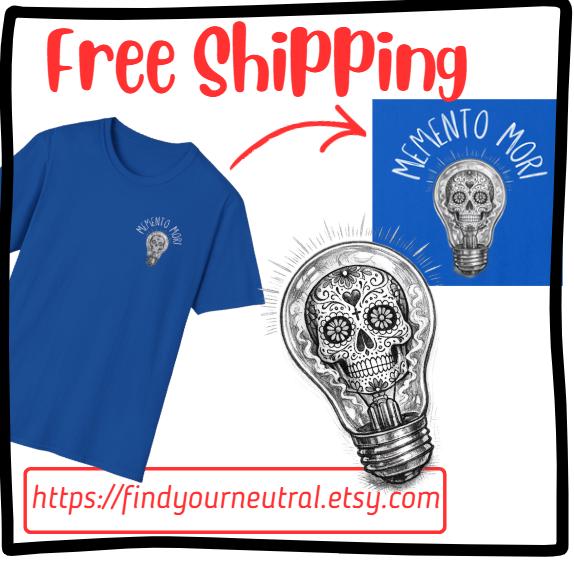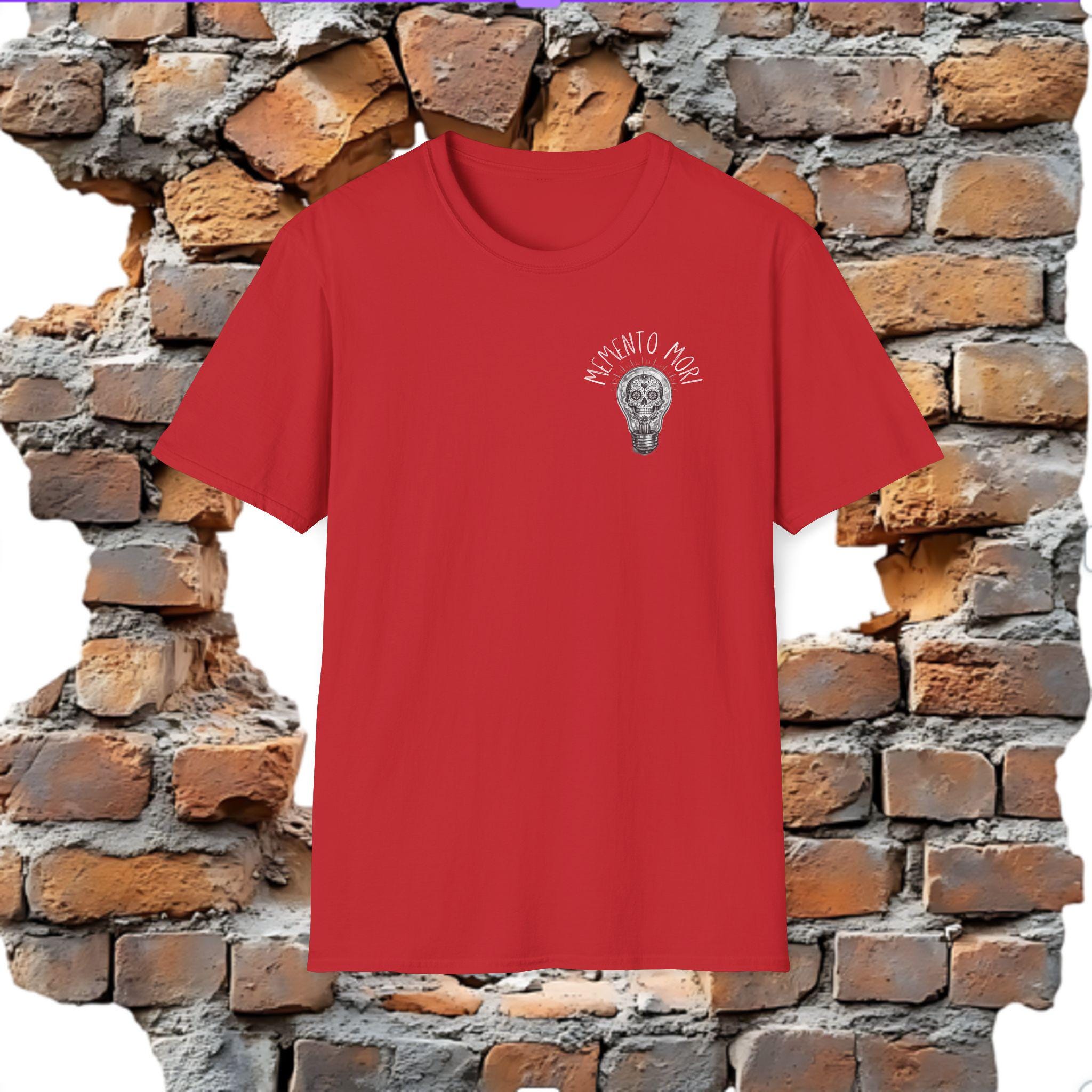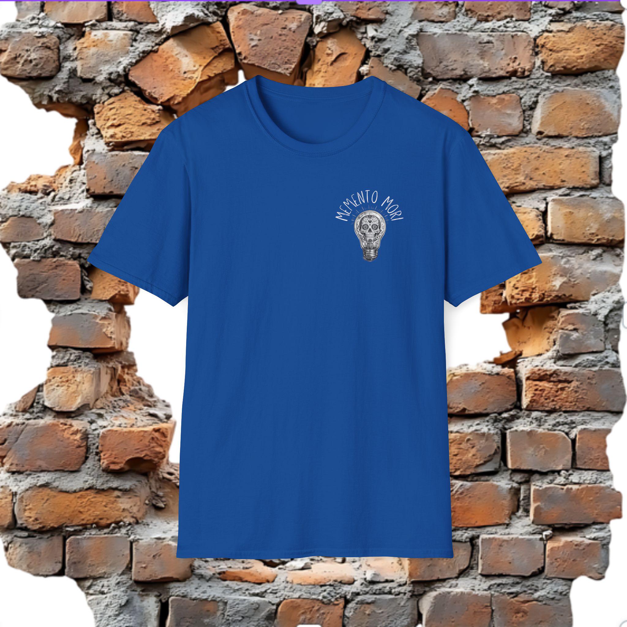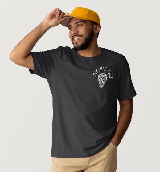 A lightweight, soft cotton tee that wears like a quiet reminder. The skull tucked inside a glowing lightbulb and the words “Memento Mori” pull the eye and the heart.