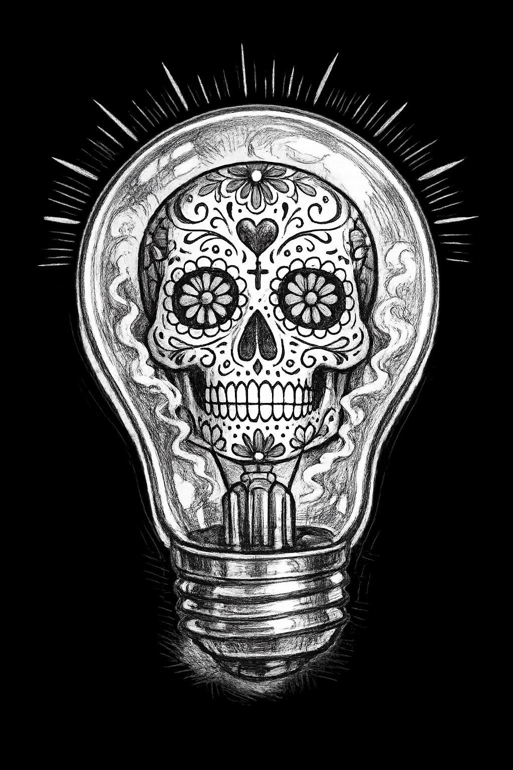Memento Mori *************FREE SHIPPING****************** The light bulb represents the brilliance of the mind/soul, while the sugar skull represents honoring that life once the light has faded.
