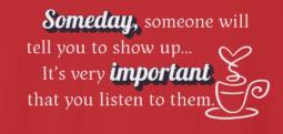 "Someday, someone will tell you to show up. It's very important you listen to them."
