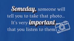 "Someday, someone will tell you to take that photo. It's very important you listen to them."