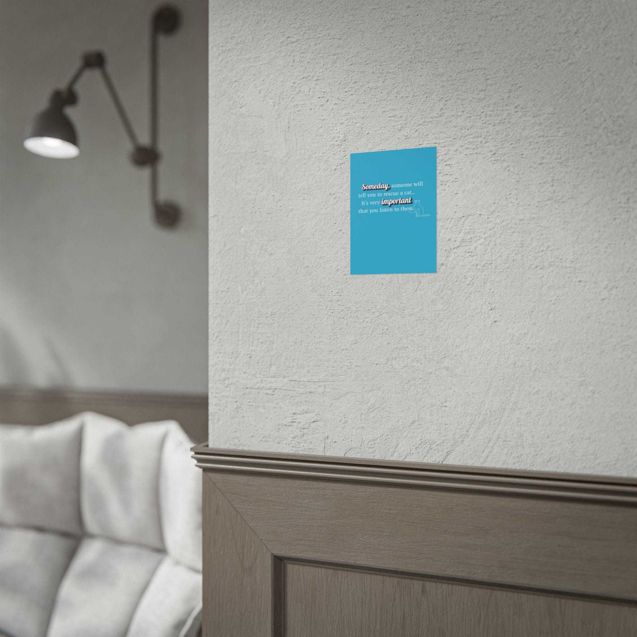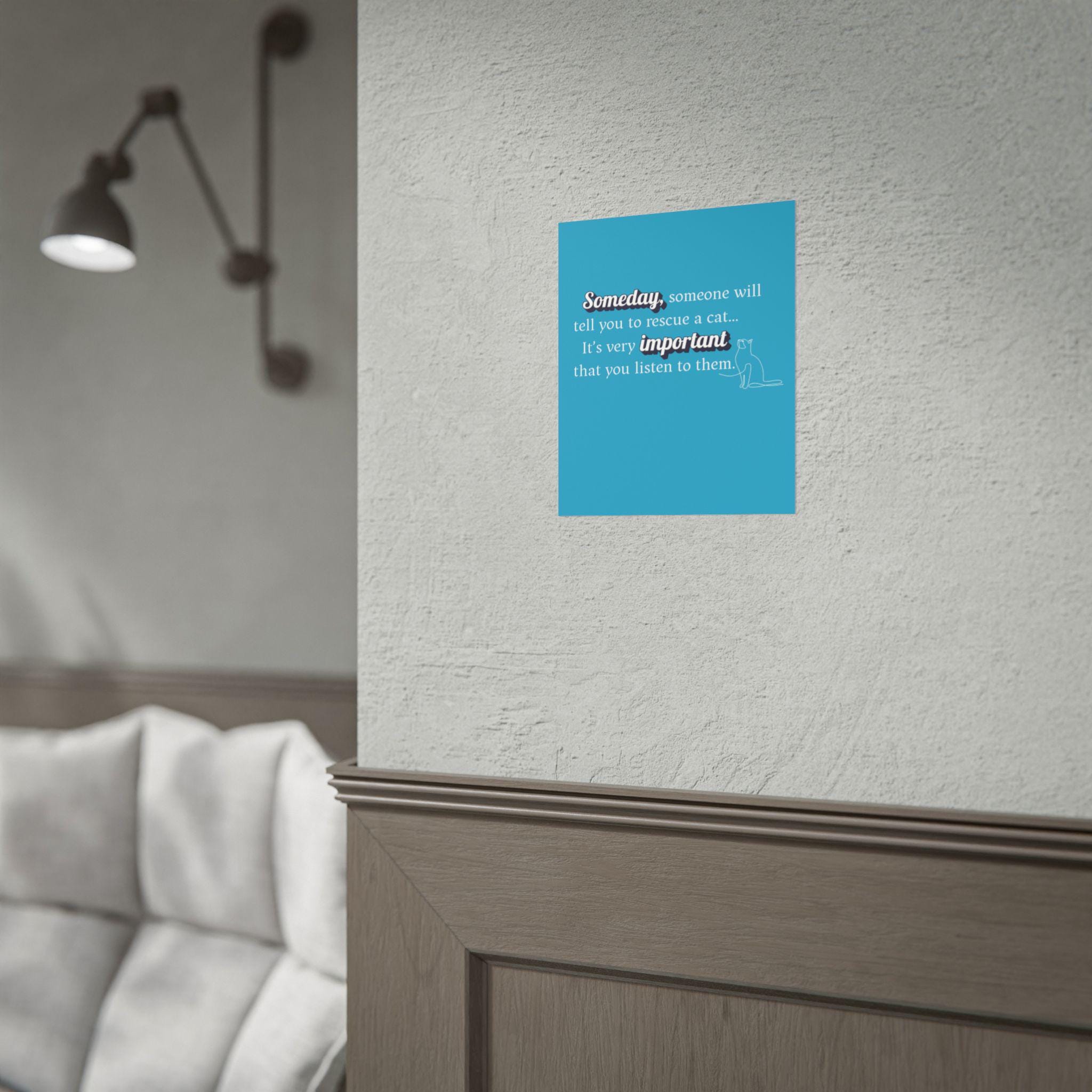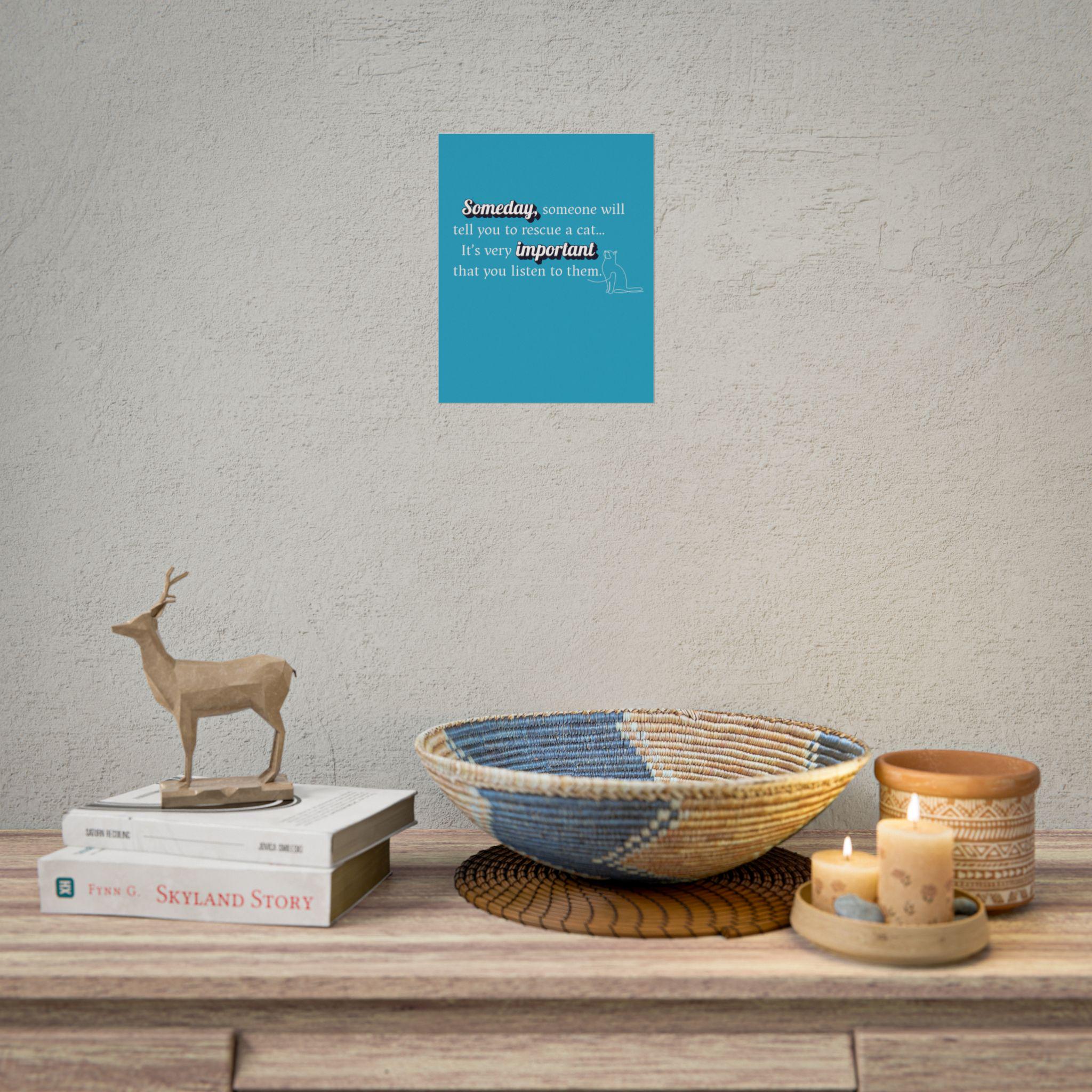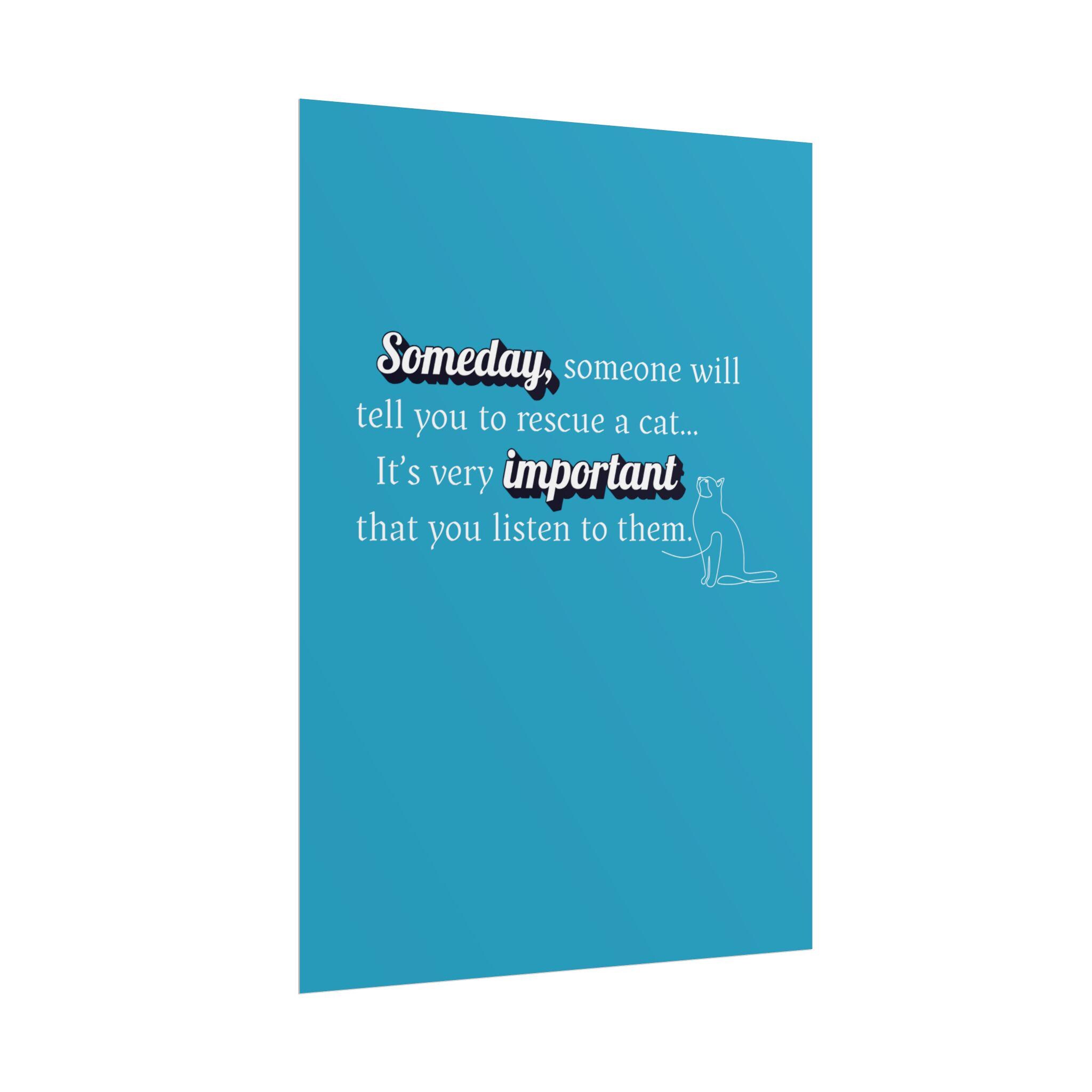 This "Someday, someone will tell you to RESCUE A CAT...its very important you listen to them." Designed in a pleasing aesthetic syle and anyone who needs an uplifting message during busy times. Slow down, create the memories that will last a lifetime. A great sign for you shelter or groomers.
