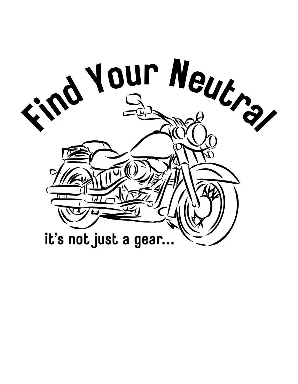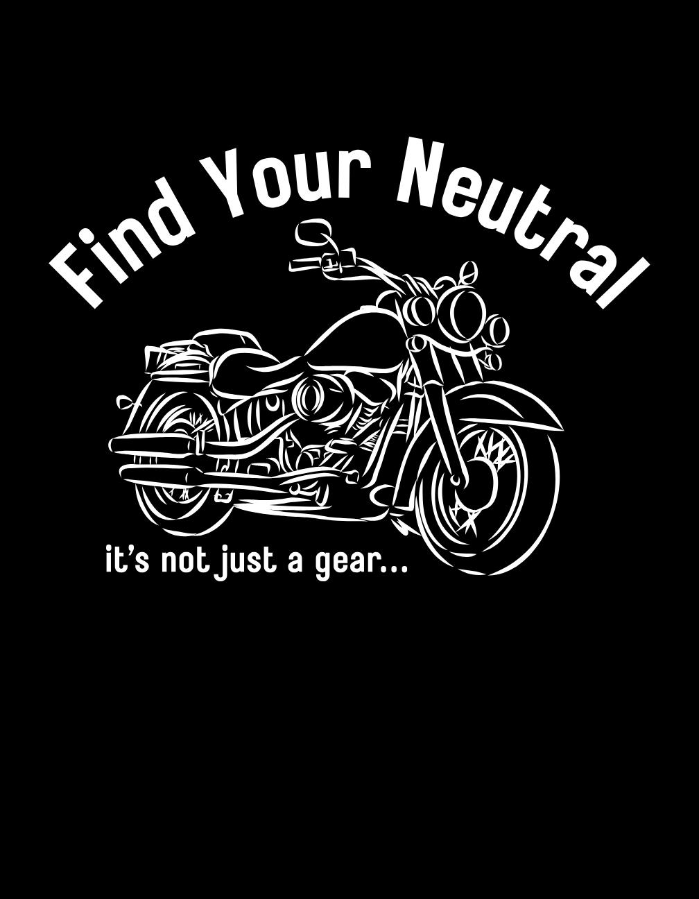 Digital Download of "Find Your Neutral" from the The Ride & Road Collection (Motorcycle & Biker T-Shirts) ~ It’s that moment the engine settles, the road clears, and the world fades into the perfect humming silence. Every motorcycle enthusiast knows this feeling - it’s where your mind finds its peace. Ask a biker, they know!