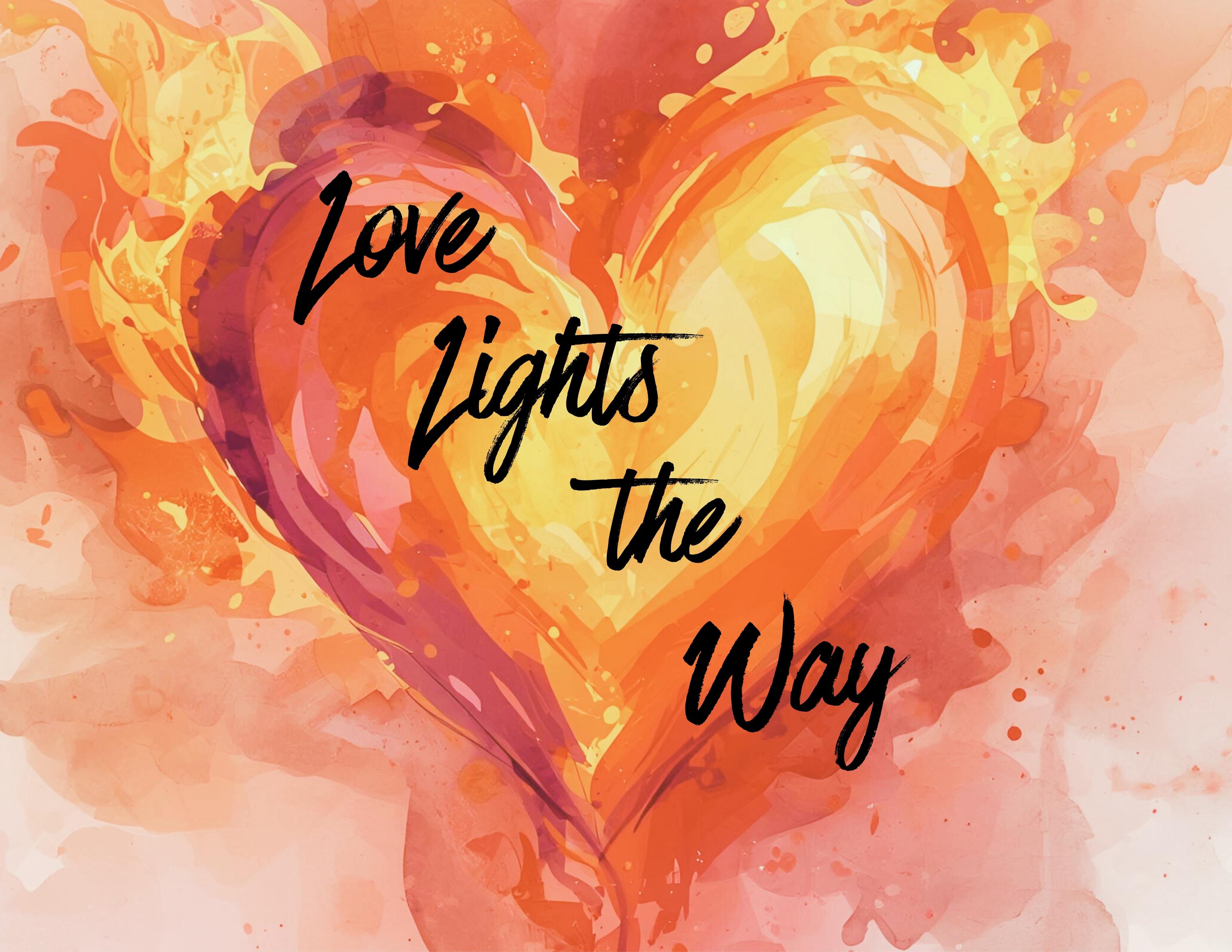 This is a digital download of a vibrant watercolor heart graphic with the text "Love Lights the Way"—an inspirational quote perfect for creating unique wall art, t-shirt designs, or custom gifts. The high-quality files are ideal for use with Cricut, Silhouette, or other cutting and sublimation machines.