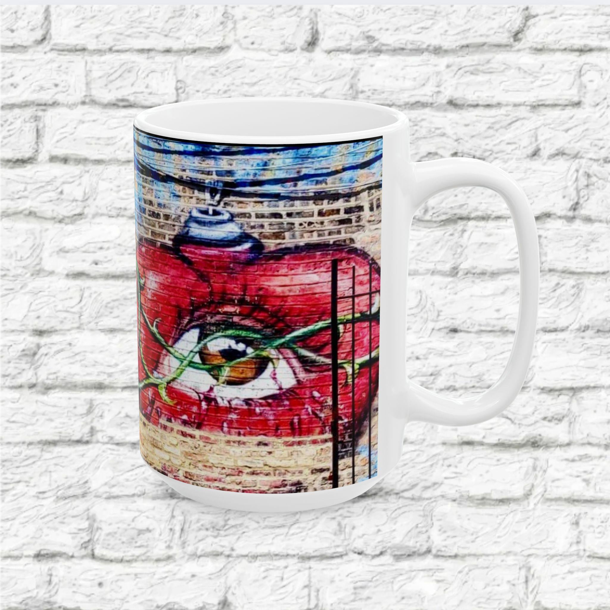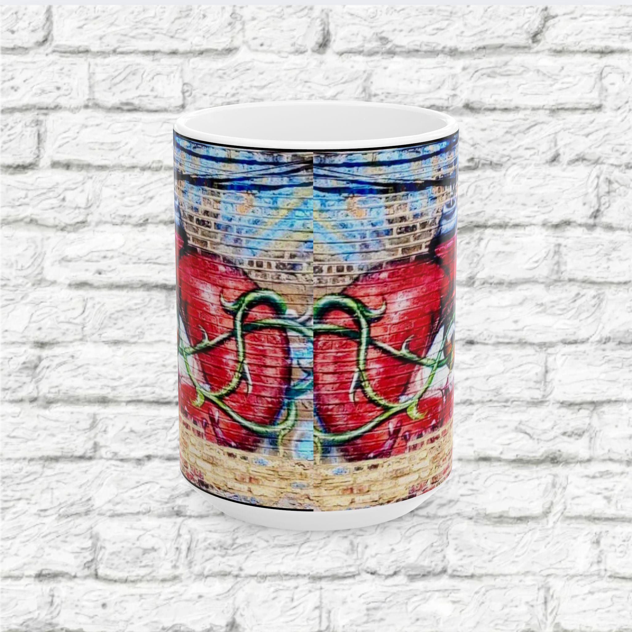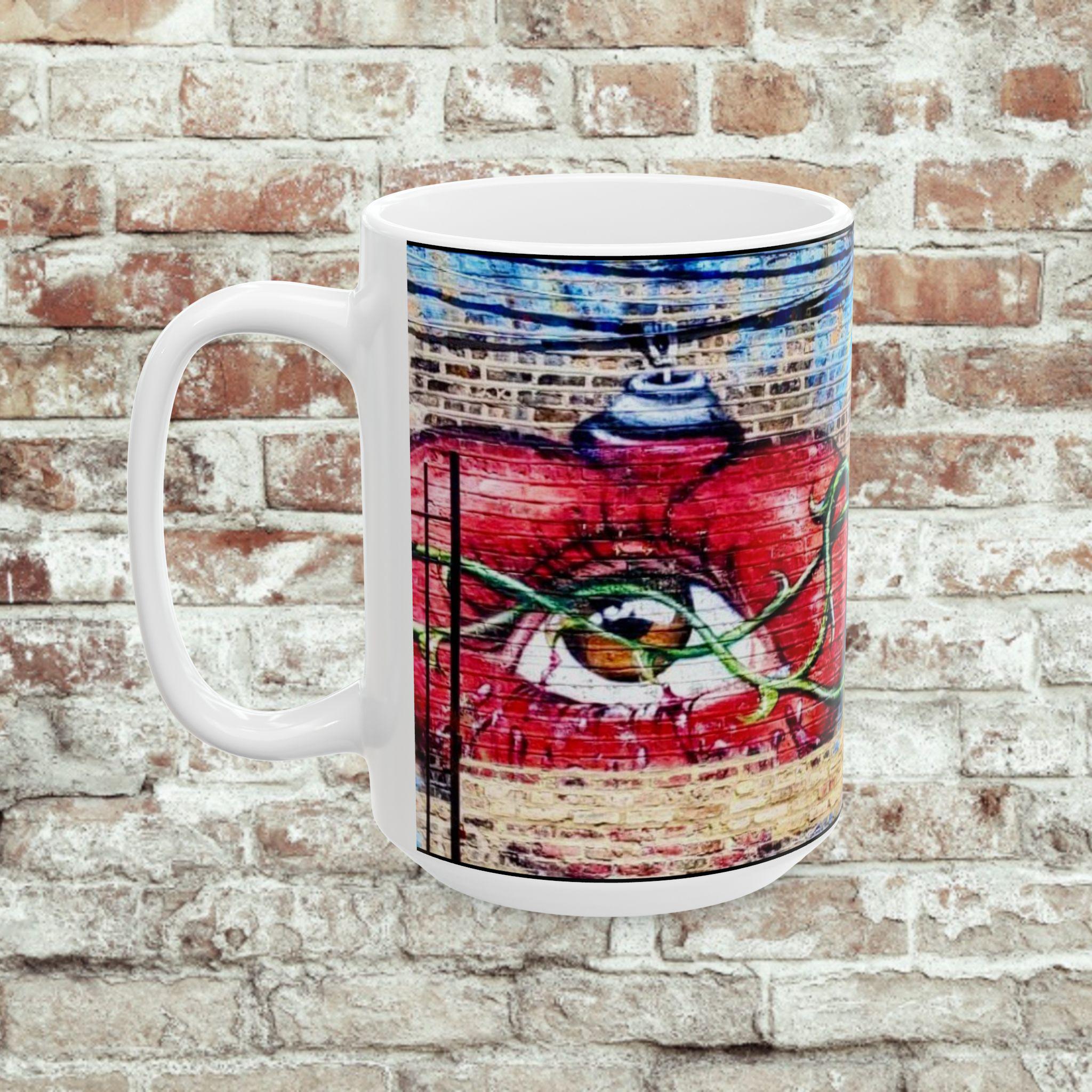 This ceramic mug carries the pulse of the street into your morning ritual. A bold heart-shaped graffiti motif wraps the glossy white surface like a mini wall mural—edgy spray-paint strokes, drips, and saturated color that still reads intimate and playful. Hold it by the comfortable C-handle as the steam rises and you can almost hear the echo of an alleyway artist at dawn. It fits effortlessly into a creative, urban life: for sketching sessions at a café, late-night editing, or slow weekend mornings where you want a flash of color and attitude. The mug’s bright print resists fading, so the art stays lively through everyday use and the occasional spill. It feels like carrying a tiny piece of street art with you—raw, personal, and alive.