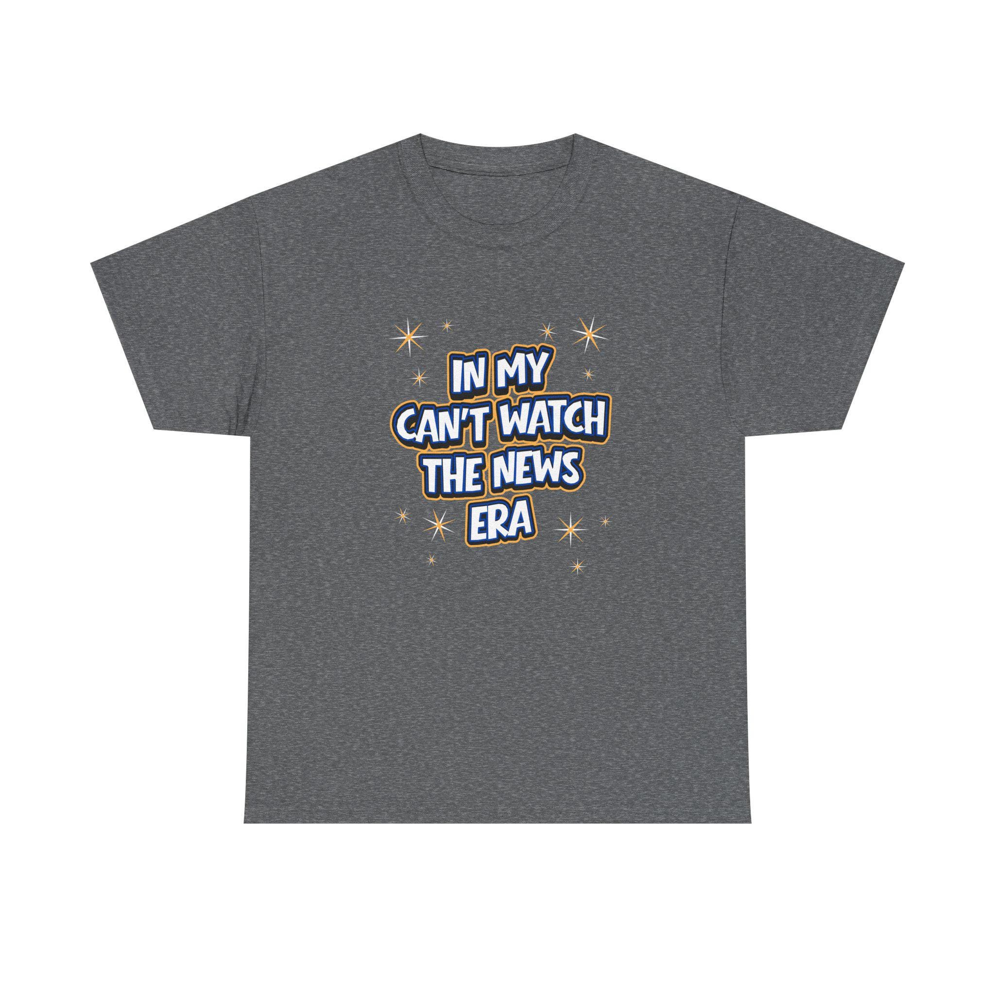 This relaxed cotton tee speaks with quiet humor and calm resolve. The small, centered front print reads “IN MY CAN’T WATCH THE NEWS ERA,” framed by tiny star accents — a gentle declaration for anyone carving out mental space. Lightweight but sturdy, the shirt settles easily into everyday routines: mornings with coffee, low-key hangouts, or slow walks to reset after a chaotic week. It’s for people who value boundaries and gentle irony; the graphic starts conversations without shouting. Wear it when you need a soft signal to friends and strangers that you’re protecting your peace. The classic crew neck and tidy fit make it easy to layer under a jacket or pair with jeans and sneakers for an unfussy, lived-in look.