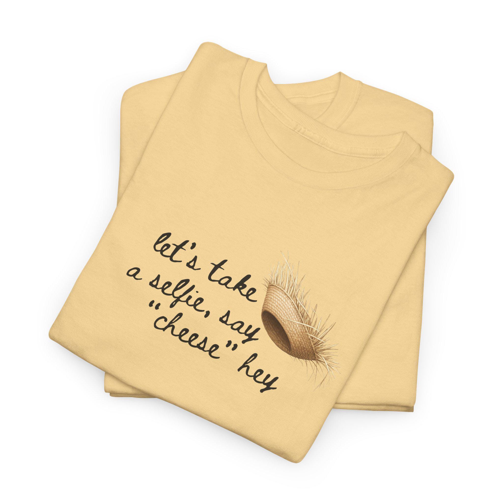 A soft, classic tee that carries a playful, concert-night energy. The shirt’s cheeky lyric — “let's take a selfie, say cheese, hey!” — sits like an inside joke among friends who remember the roar of the crowd and the bright lights. Wear it to late-night hangouts, music-bar singalongs, or while scrolling through photos and laughing at old moments. The relaxed fit and smooth print keep the design feeling lived-in and comfortable. It’s the sort of shirt you pull on when you want to spark a smile, start a conversation, or nod at a famous halftime moment with people who know the reference.