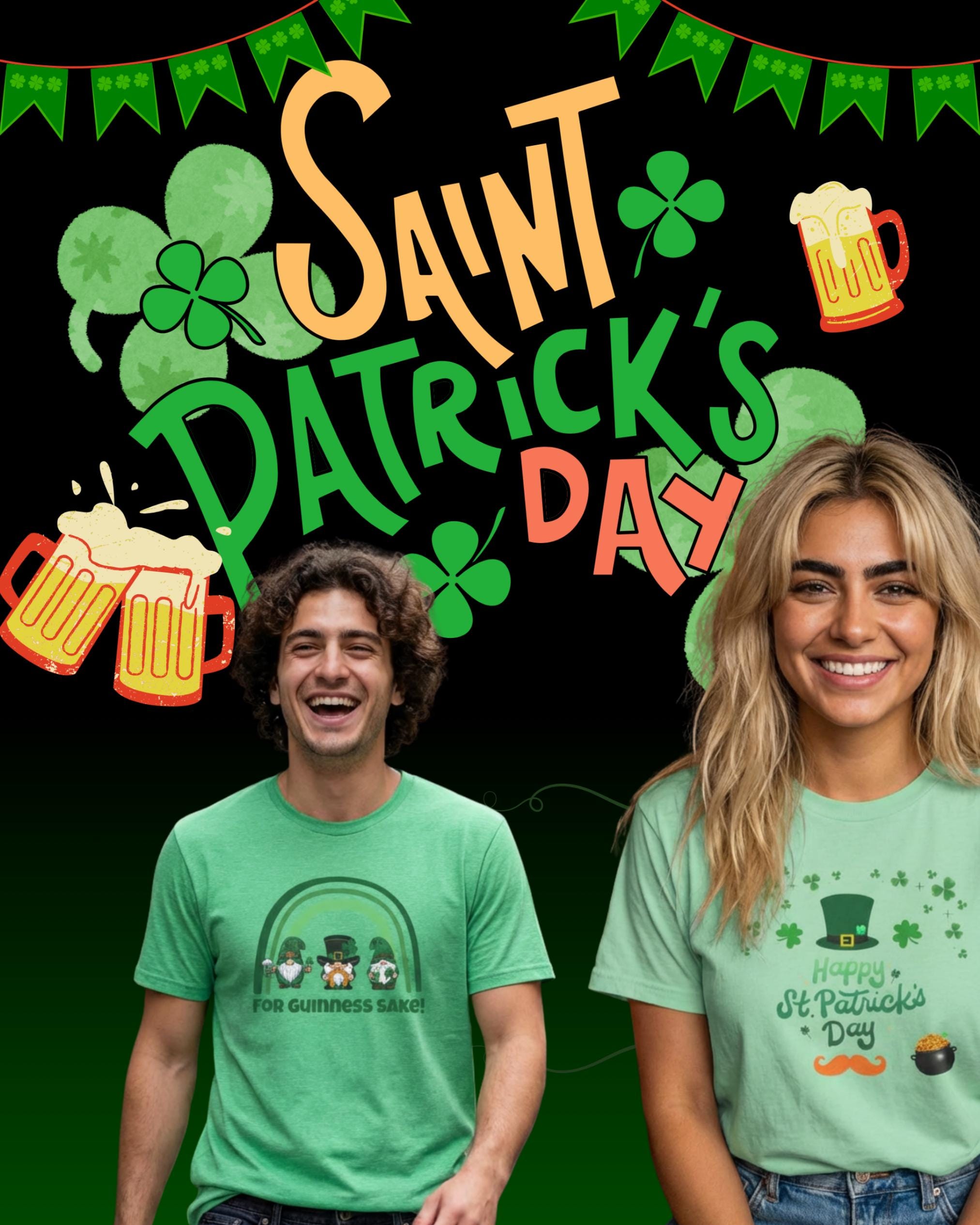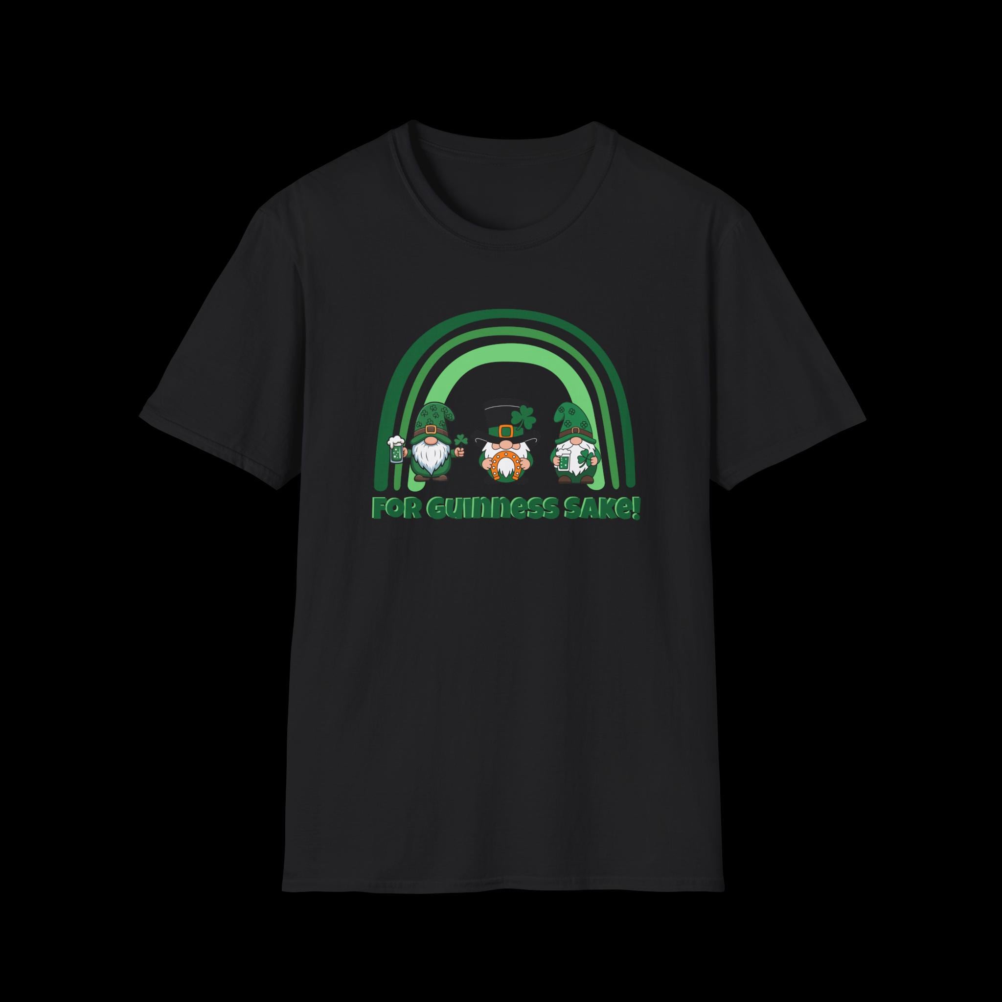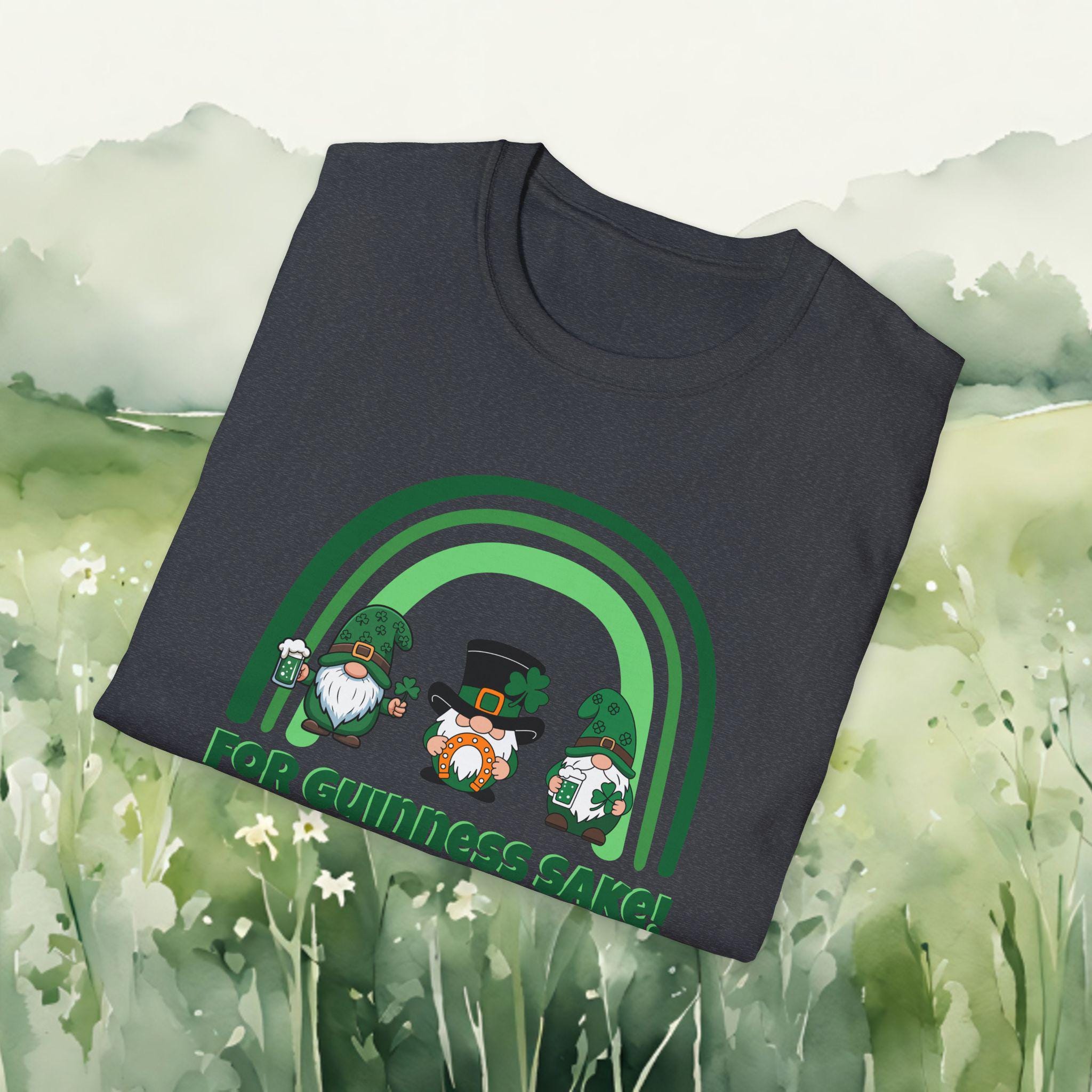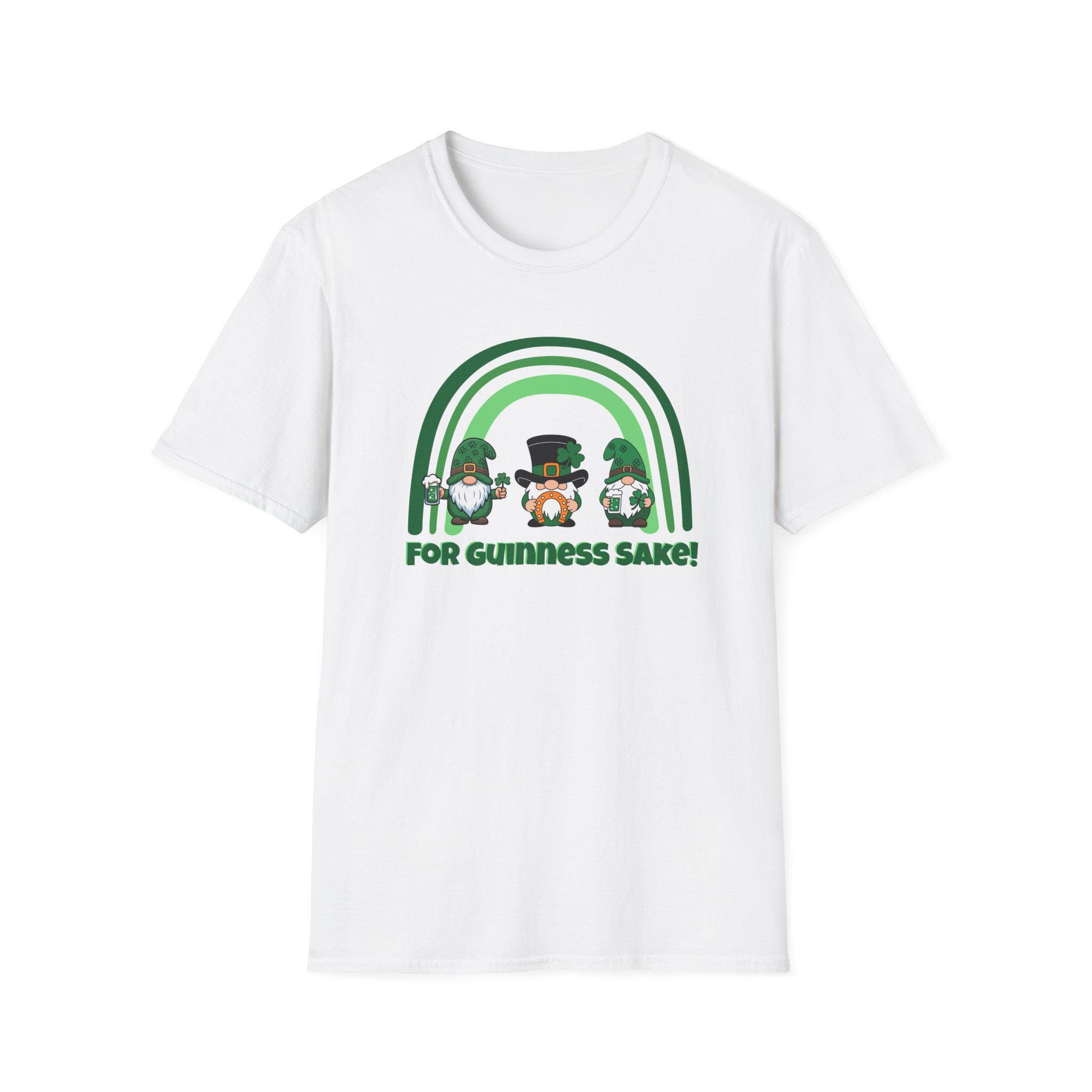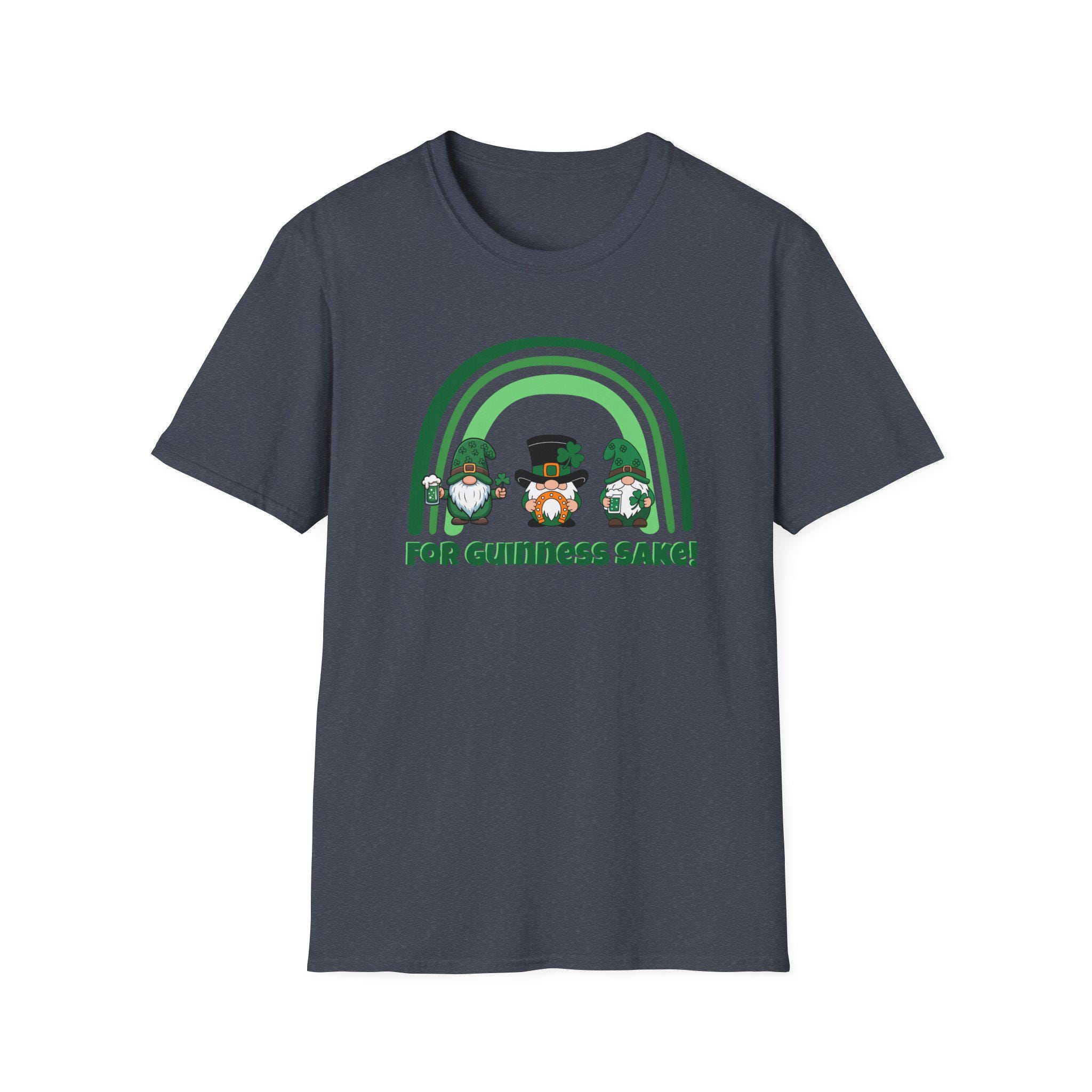 A soft, everyday tee that brings a cheeky slice of Irish pub humor into your wardrobe. Lightweight ring-spun cotton feels comfortable all day while the bright, playful graphic — a row of shamrock-clad characters beneath a retro green rainbow with the phrase “FOR GUINNESS SAKE!” — adds instant personality. Wear it to casual gatherings, St. Patrick’s Day outings, or low-key weekends at the local bar. The classic crewneck and relaxed cut layer easily under a jacket or stand alone as the shirt you reach for when you want to be comfortable and a little mischievous. Ethically sourced cotton and a smooth print surface keep the design crisp wash after wash, so the joke keeps looking fresh.