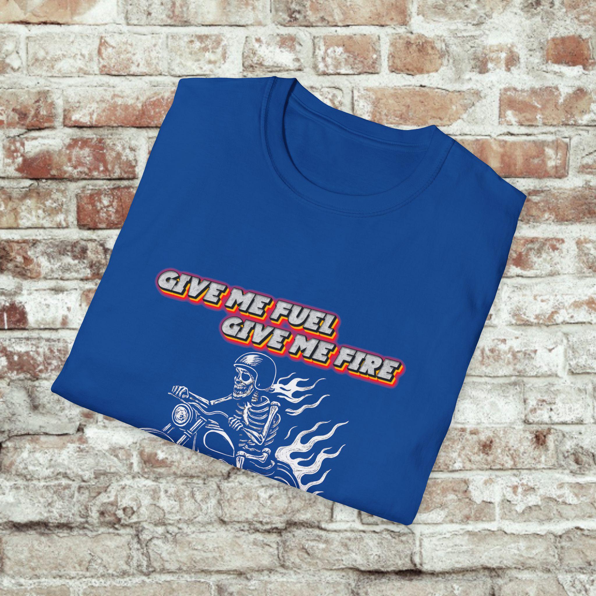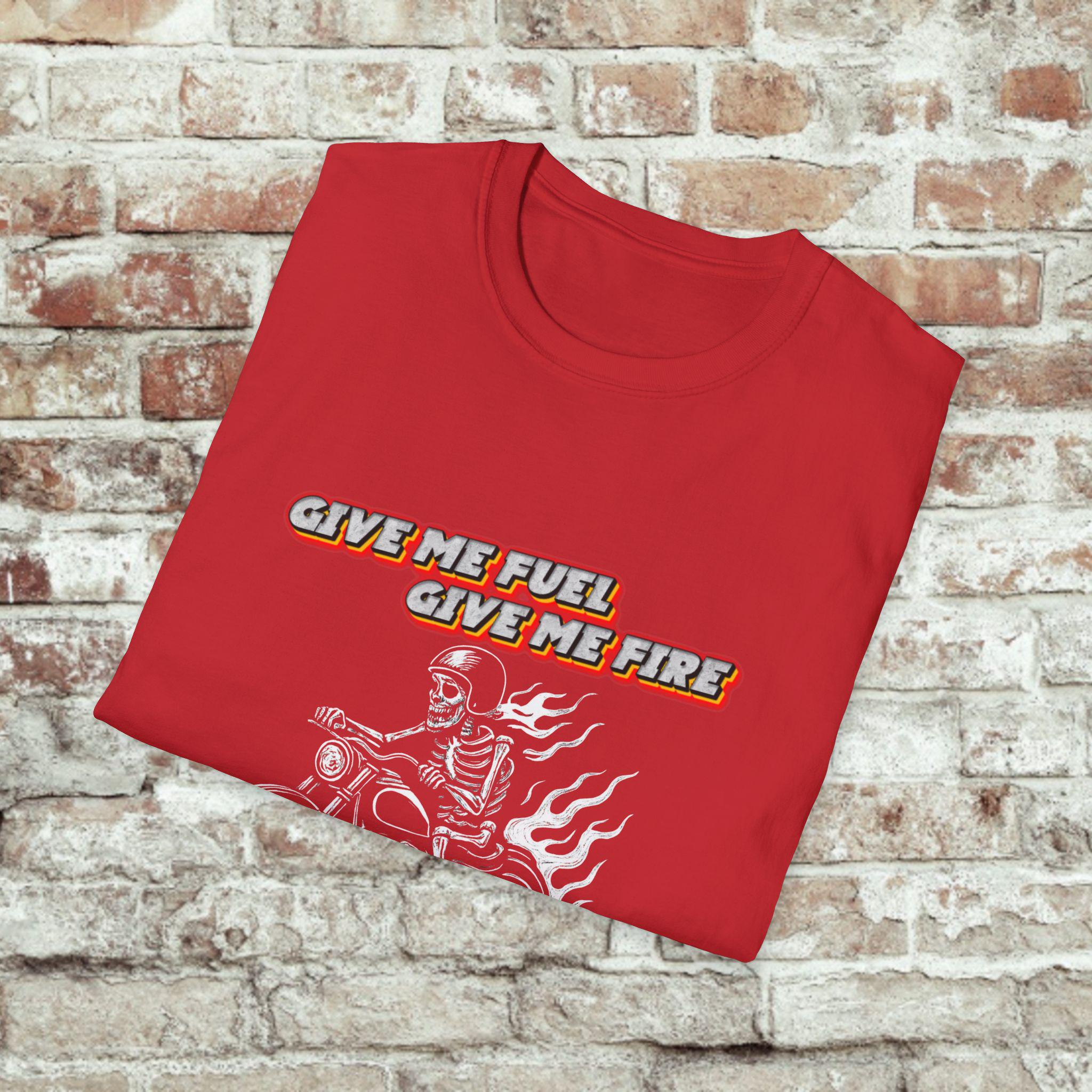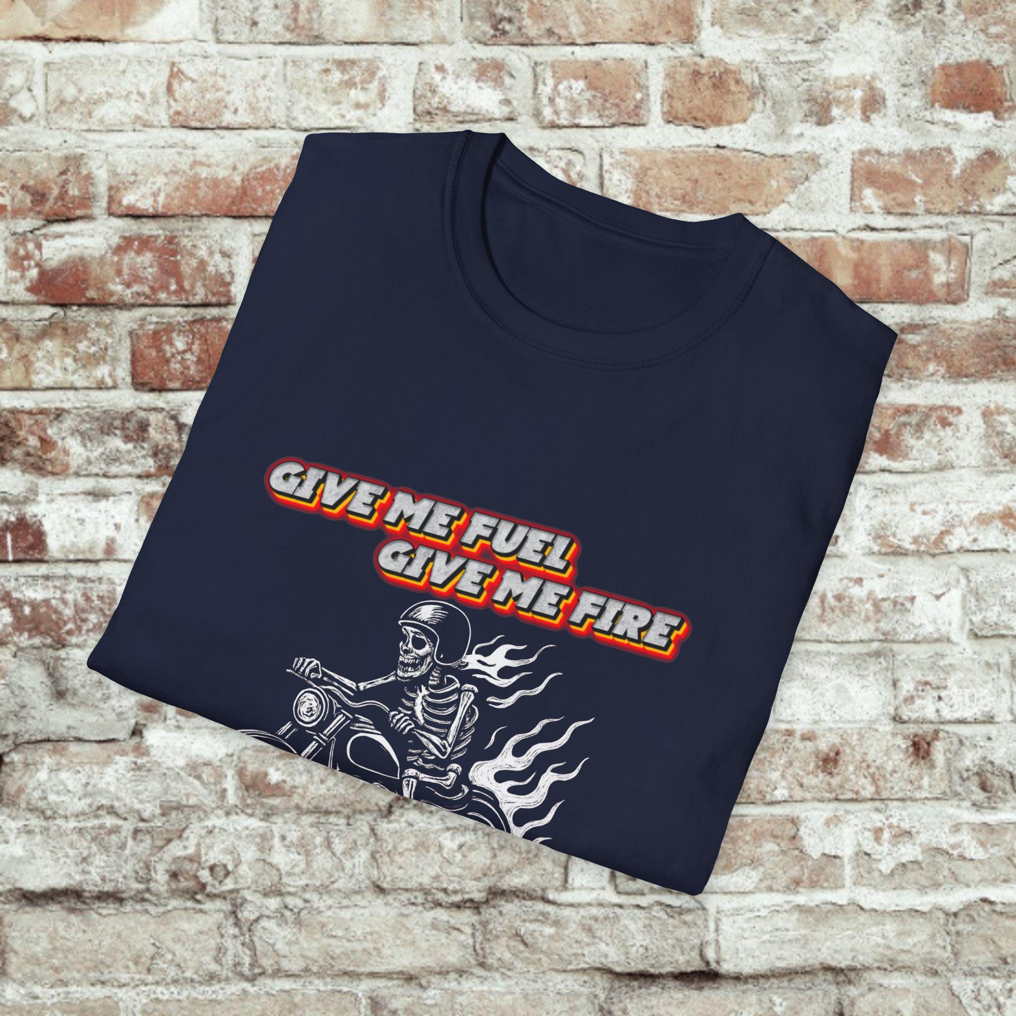 Give Me Fuel, Give Me Fire, TI’S THE MILES I DESIRE! Tee carries the low, steady hum of a highway at dawn. The soft, lightweight cotton sits close without clinging, the graphic announcing a life spent leaning into curves and chasing open miles. Wear it under a leather jacket or alone at a pit stop — it settles in like an old riding partner. Riders will recognize the shorthand of road grit and quiet confidence: no fuss, just the call of the next stretch of asphalt. Built to withstand long weekends and frequent washes, the shirt keeps its shape and the print stays sharp. Slide into it, kick the stand up, and go find the horizon.