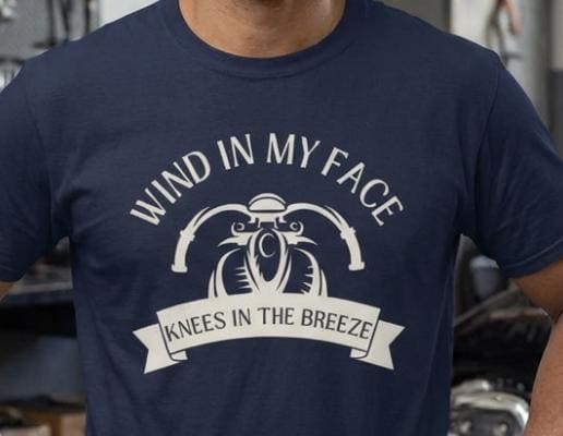 This soft, lightweight tee carries the open-road spirit—wind across your chest, knees tucked into the breeze. The simple motorcycle line evokes long rides at sunset, quick gas-station coffee stops, and the quiet roar of a well-tuned engine. It sits comfortably under a leather jacket or alone on a warm afternoon, giving riders a subtle way to wear their route and rhythm. The fit feels familiar without choking the throat. This is for the person who measures time in miles and remembers routes by scent and sky—an honest shirt that slides into weekends, rallies, and late-night rides.