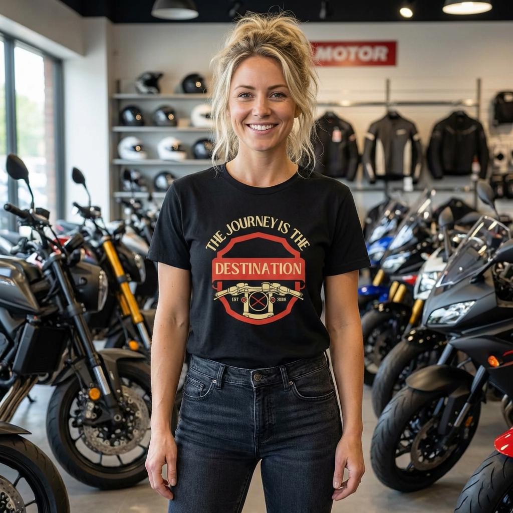 Gear up for the open road. Our t-shirts and sweatshirts feature bold graphics, vintage-inspired designs, and powerful slogans for the rider in all of us. High-quality cotton built for comfort on long rides or at the next rally. A lived-in rider’s tee that carries a quiet confidence: “The Journey Is The Destination” stamped across the chest like a weathered reminder to keep moving. Lightweight ring-spun cotton sits close but breathable, so it layers under a leather jacket or stands alone on a warm morning ride. The tubular knit and taped shoulders keep the silhouette clean after many washes. Sleeve and neck details are printed with modern DTF/DTG techniques for a bold, long-lasting graphic that won’t crack or fade. Wear it to the garage, to a roadside stop, or on a weekend run—this shirt belongs to people who value the road more than the map.